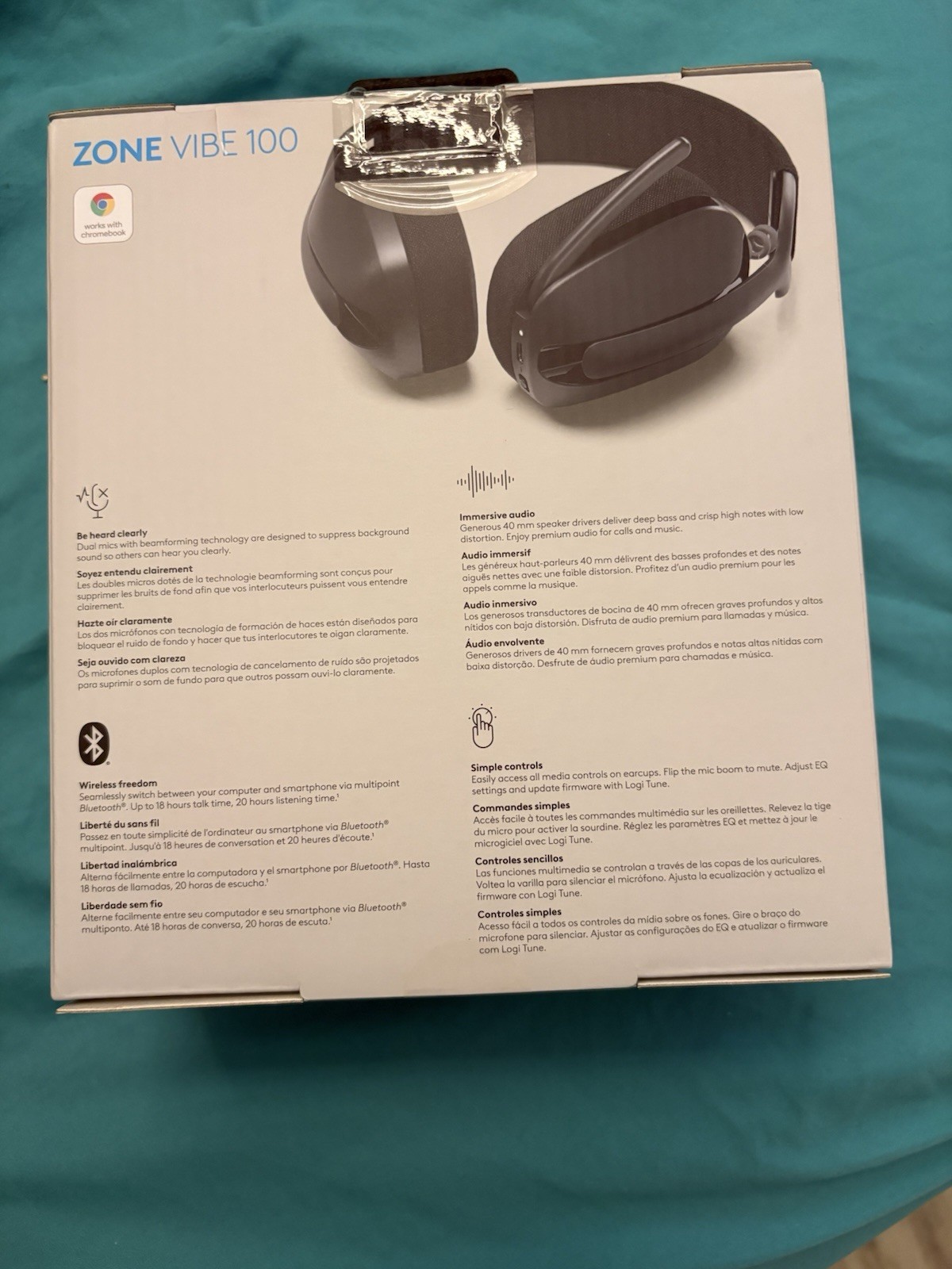 Logitech Zone Vibe 100 Lightweight Wireless Over Ear Headphones w/ Noise Cancel