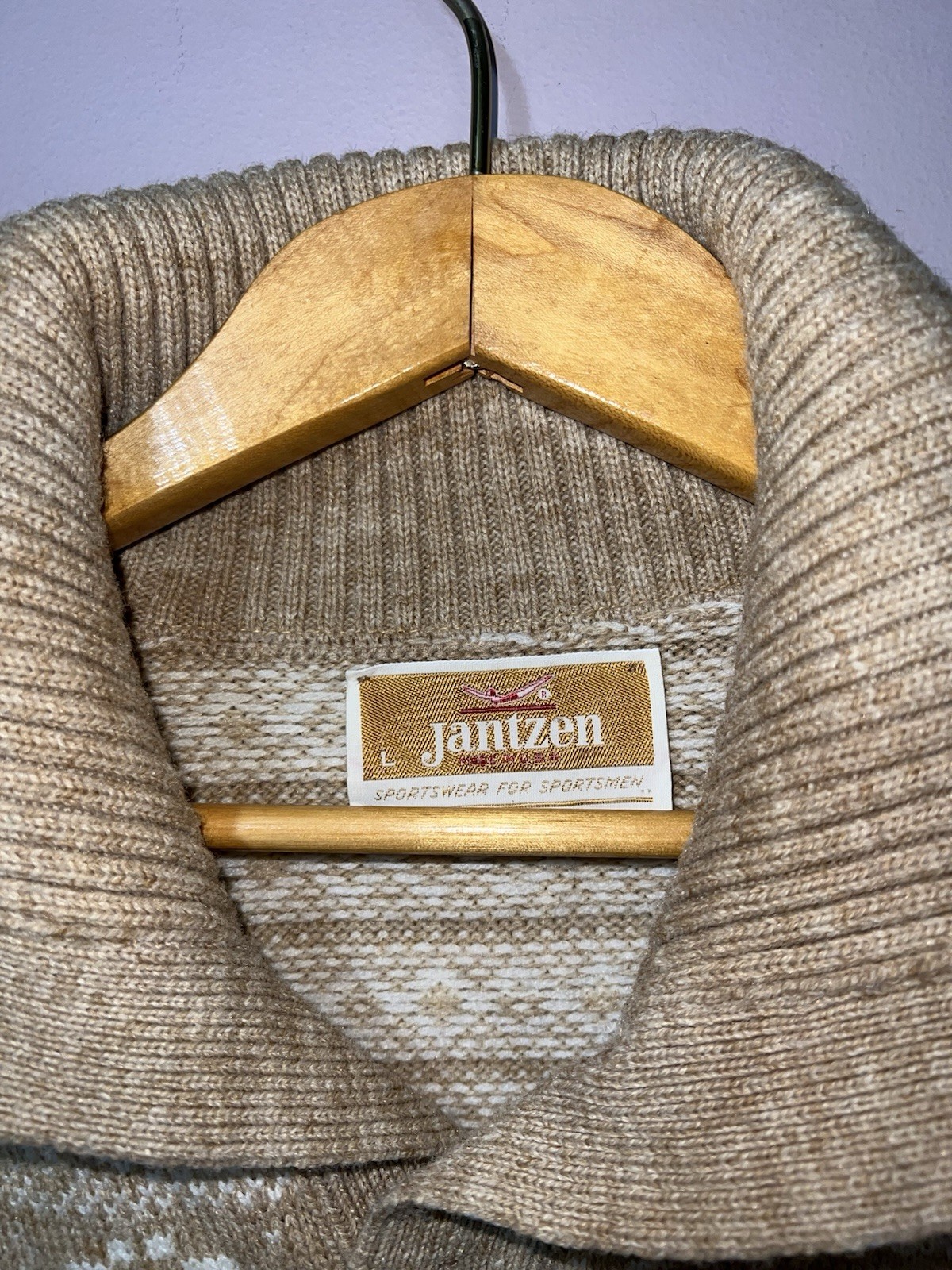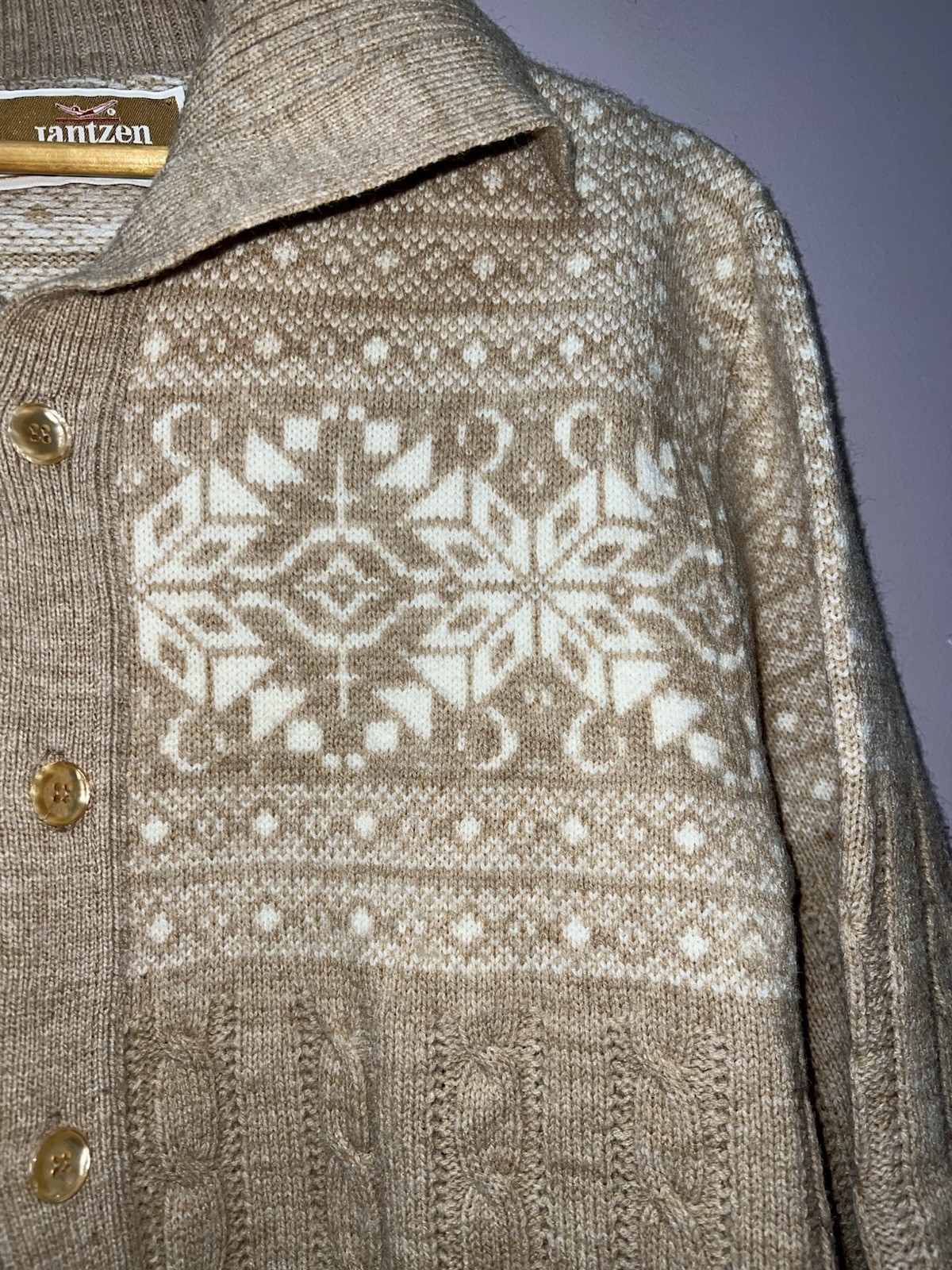 как выглядит VINTAGE 1960s JANTZEN WOOL BUTTON UP WINTER SWEATER large фото