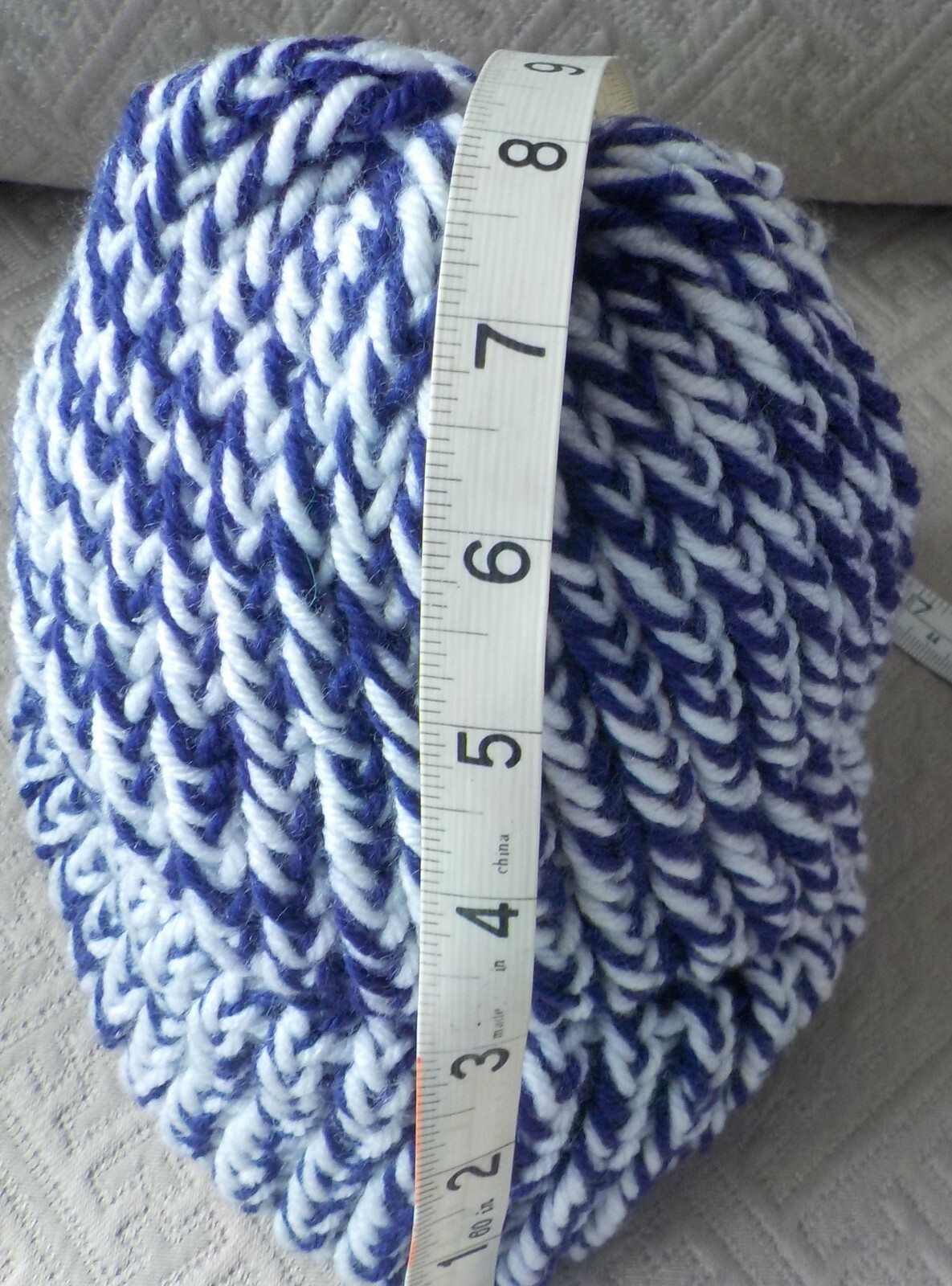 9 inch from base to top center: 18.5 inch around cuff of Hat, Knit is stretchy