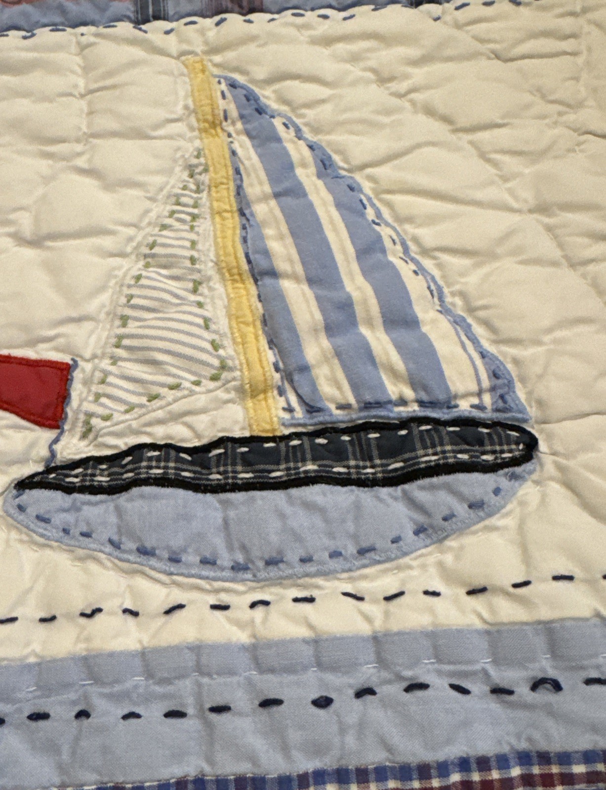 Pottery Barn Kids Crib Quilt Sailboats Nautical Ocean Nursery 46 X 35 Blanket