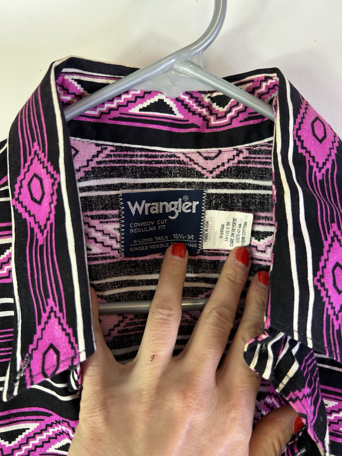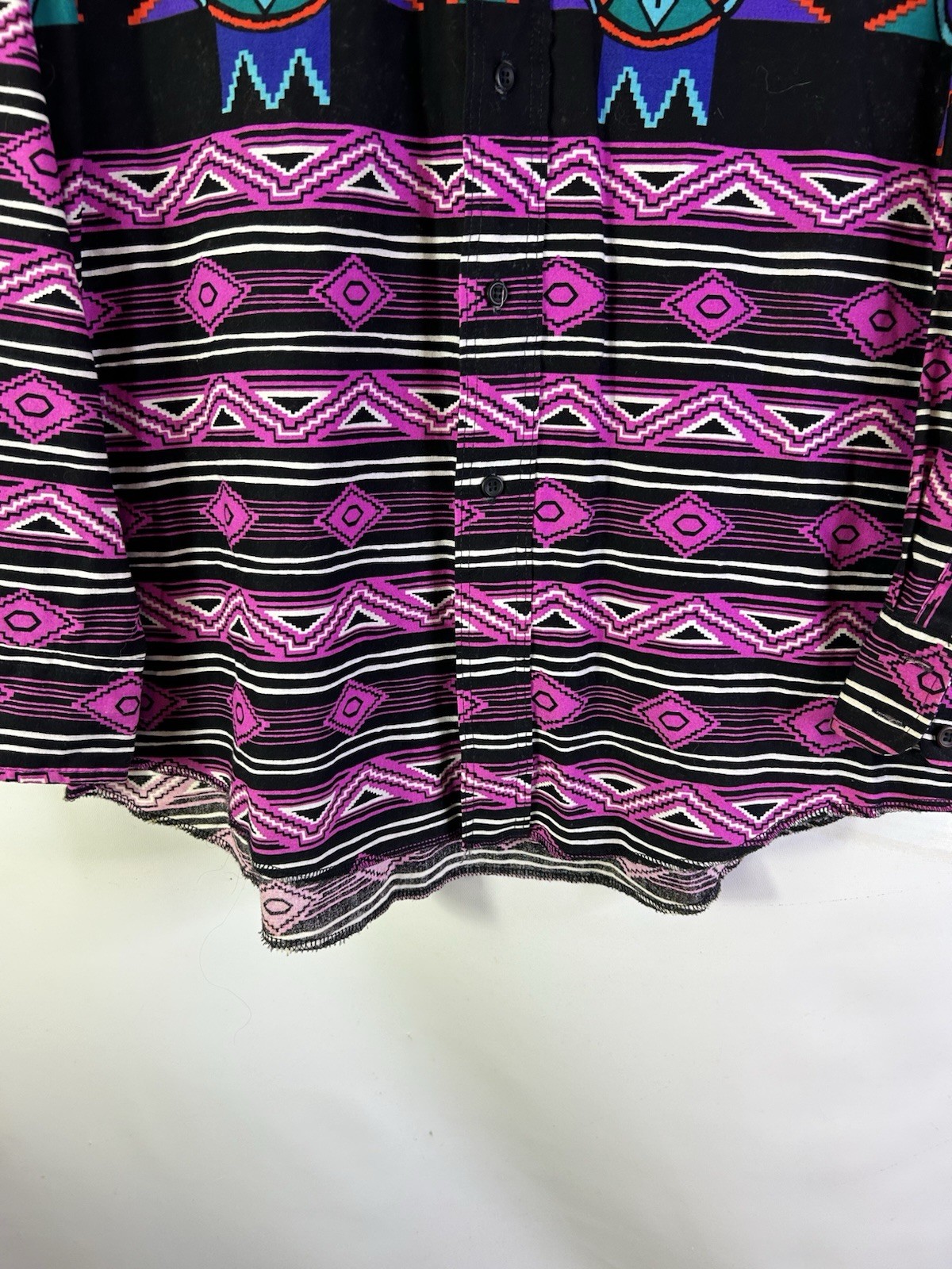 как выглядит Vintage 90s Wrangler Mens 16.5-34 Rainbow Navajo Western Print Button Shirt фото