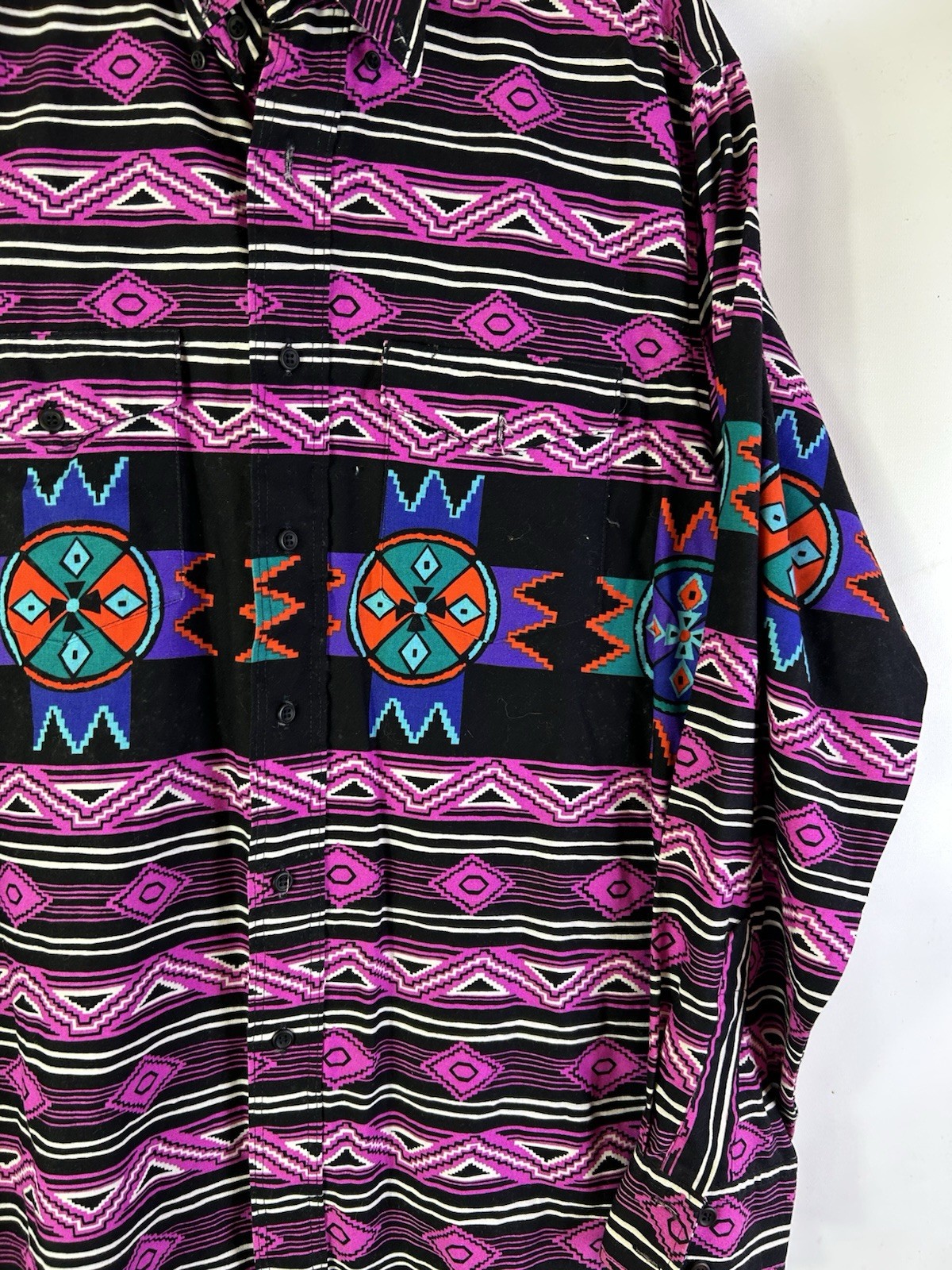 Vintage 90s Wrangler Mens 16.5-34 Rainbow Navajo Western Print Button Shirt