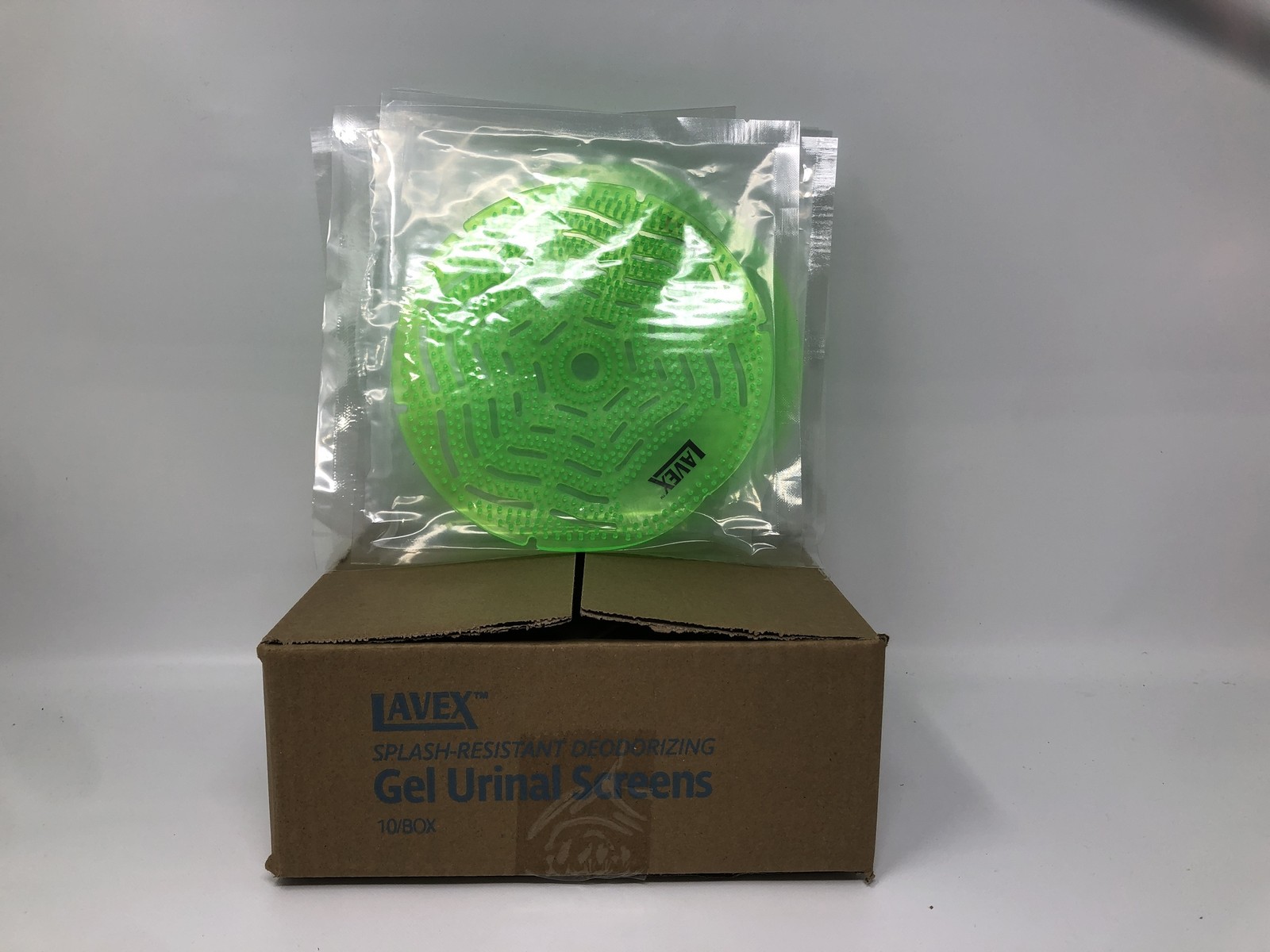 LAVEX Gel Urinal Screens Splash-Resistant Deodorizing Green Apple Scented 10 Pk