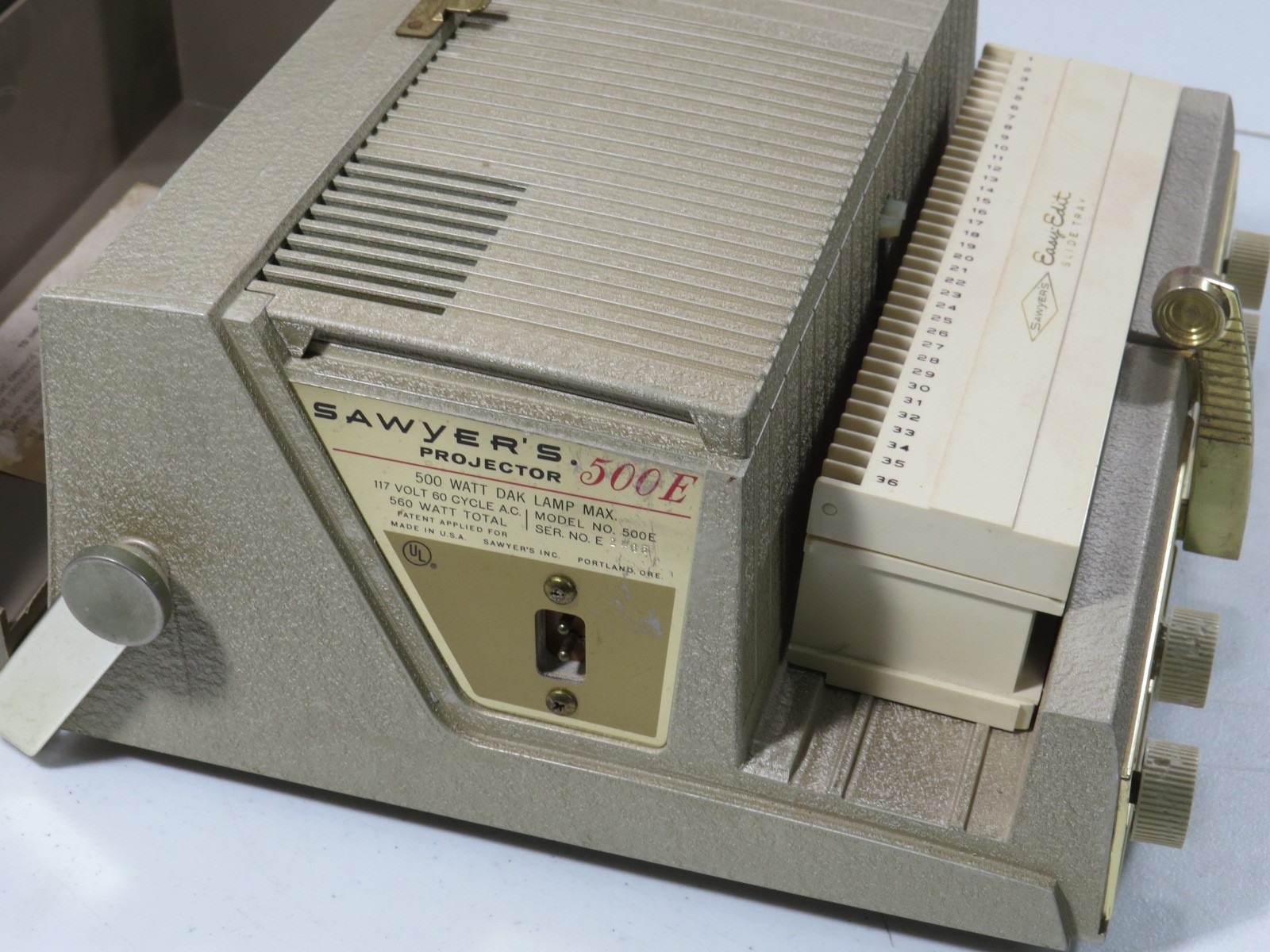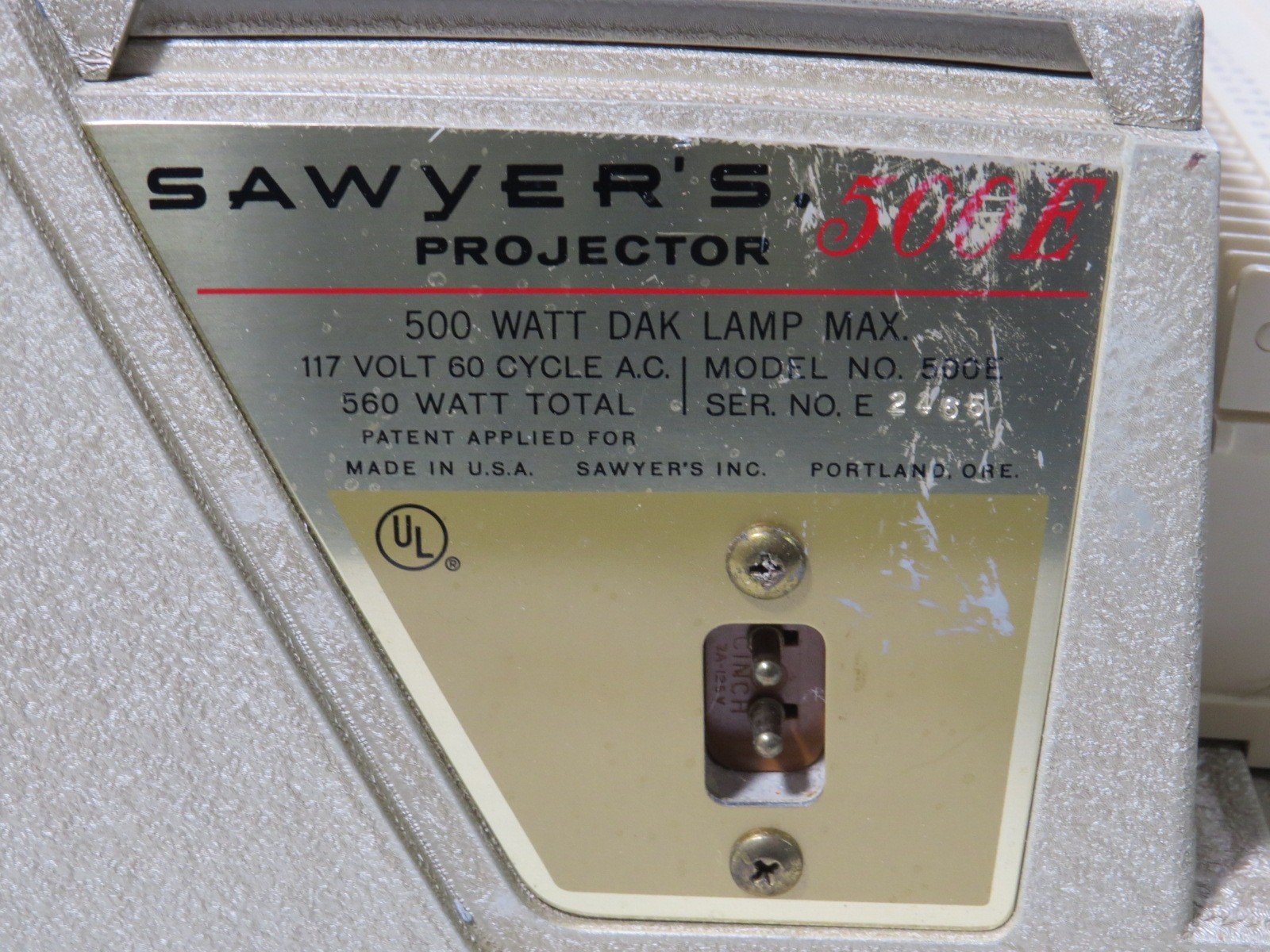 Vintage Sawyer s 500E Projector Starts Up And Runs Bulb and Fan Work