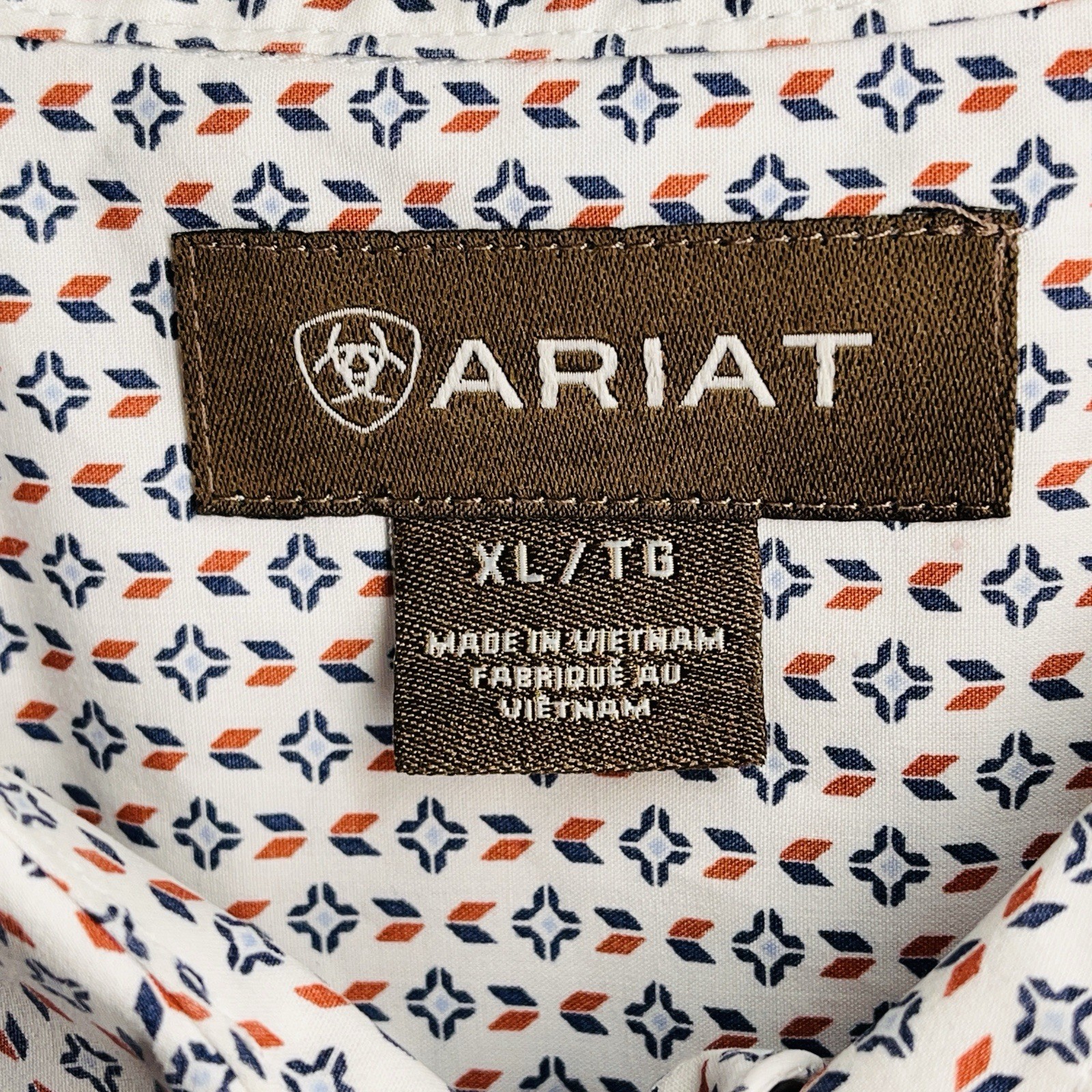 Ariat Men s Western White Geometric Print Button Down Wrinkle Free LS Shirt XL
