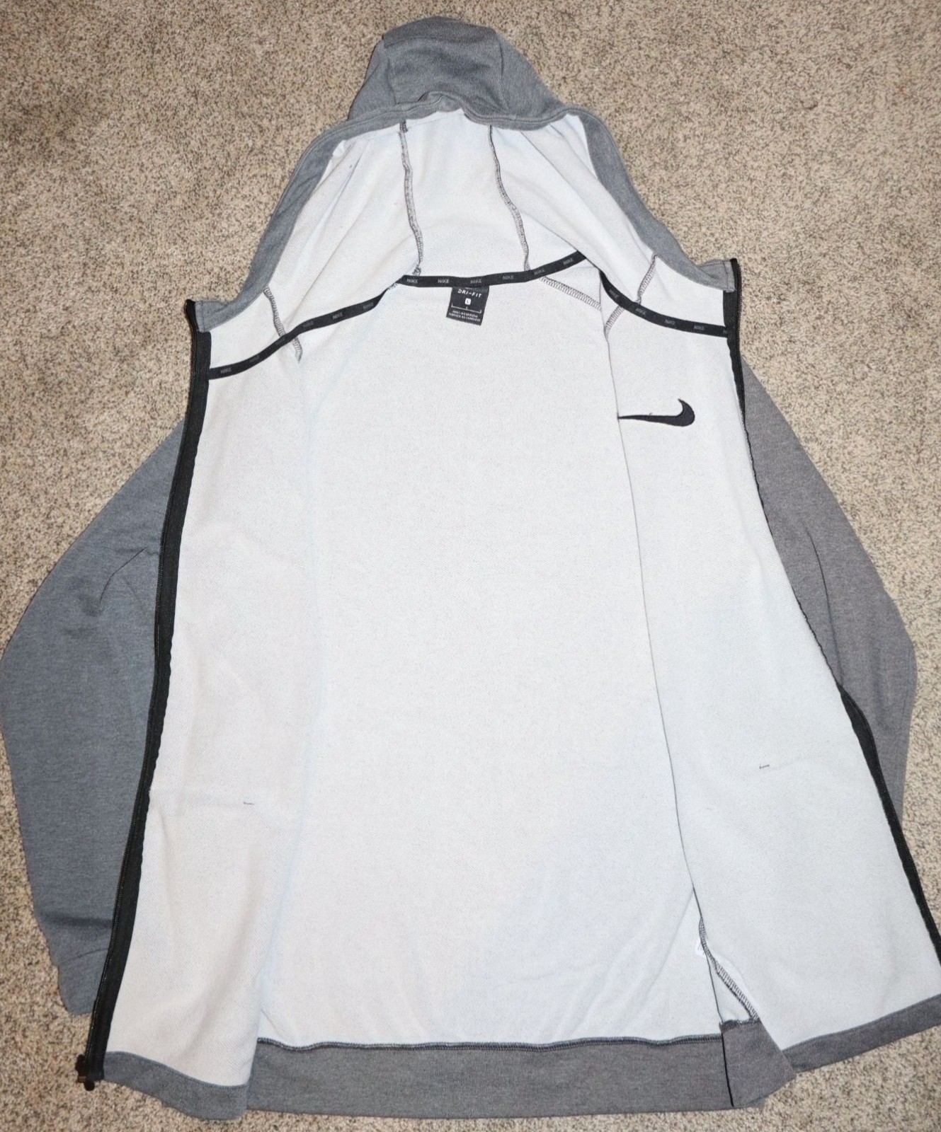 как выглядит Nike Full Zip Jacket Dri FIT Hooded Long Sleeve Dark Grey Mens Size Large фото