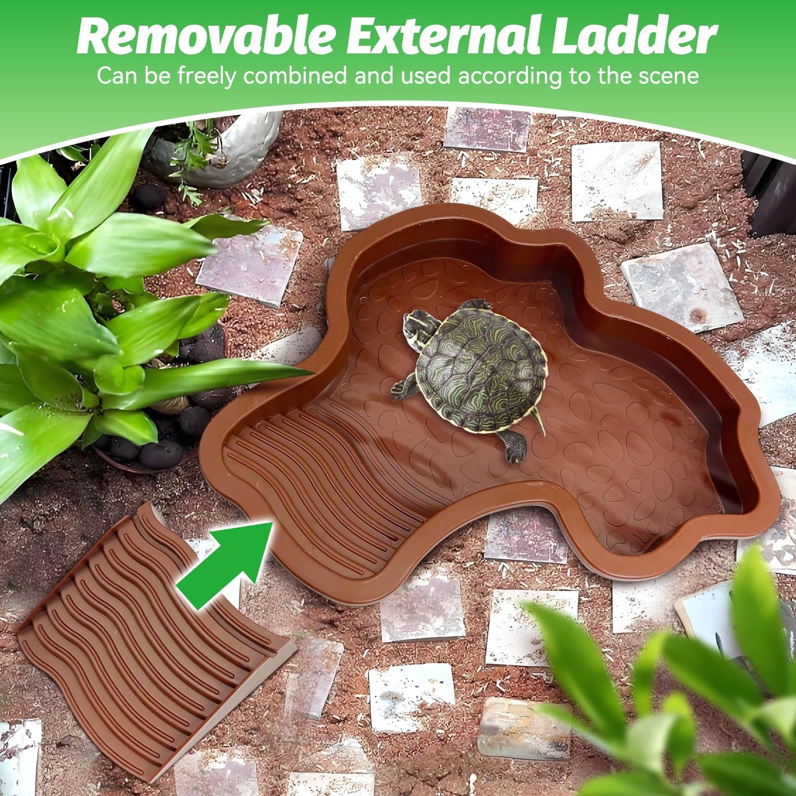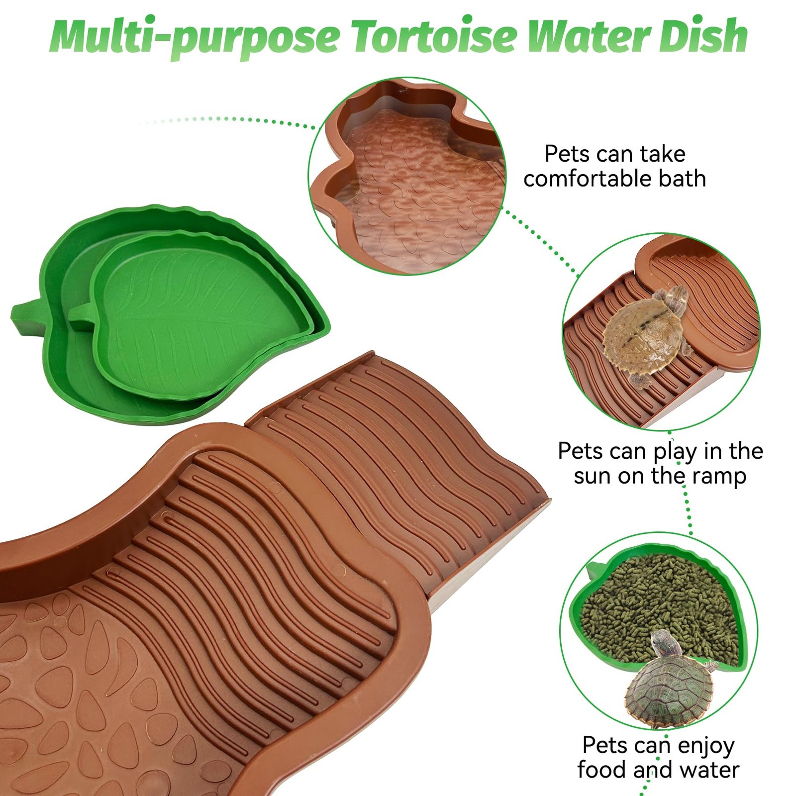 3 PCS Tortoise Water Dish Bathing Pool With Ramp Leaf Reptile Food Bowl
