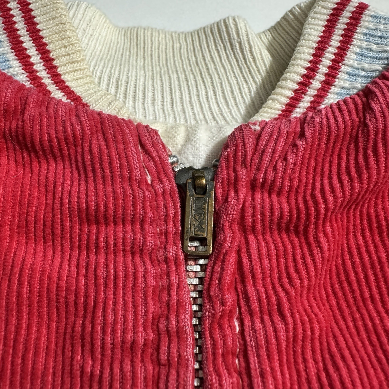 как выглядит Vintage 60s Corduroy Children Kids Bomber Jacket In Red Serval Zipper фото