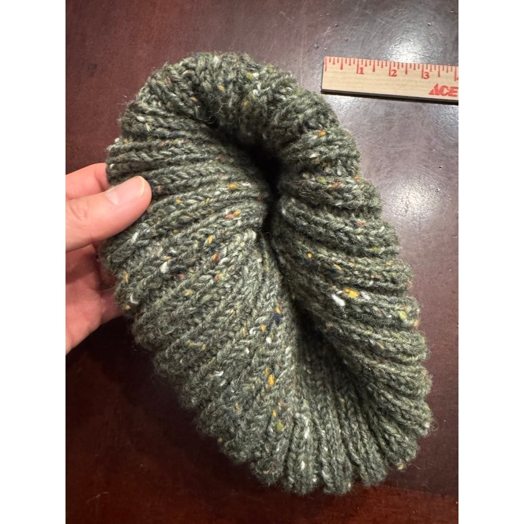 Chunky Knit Beanie Hat Green Speckled Tweed Warm Winter Ski Cap