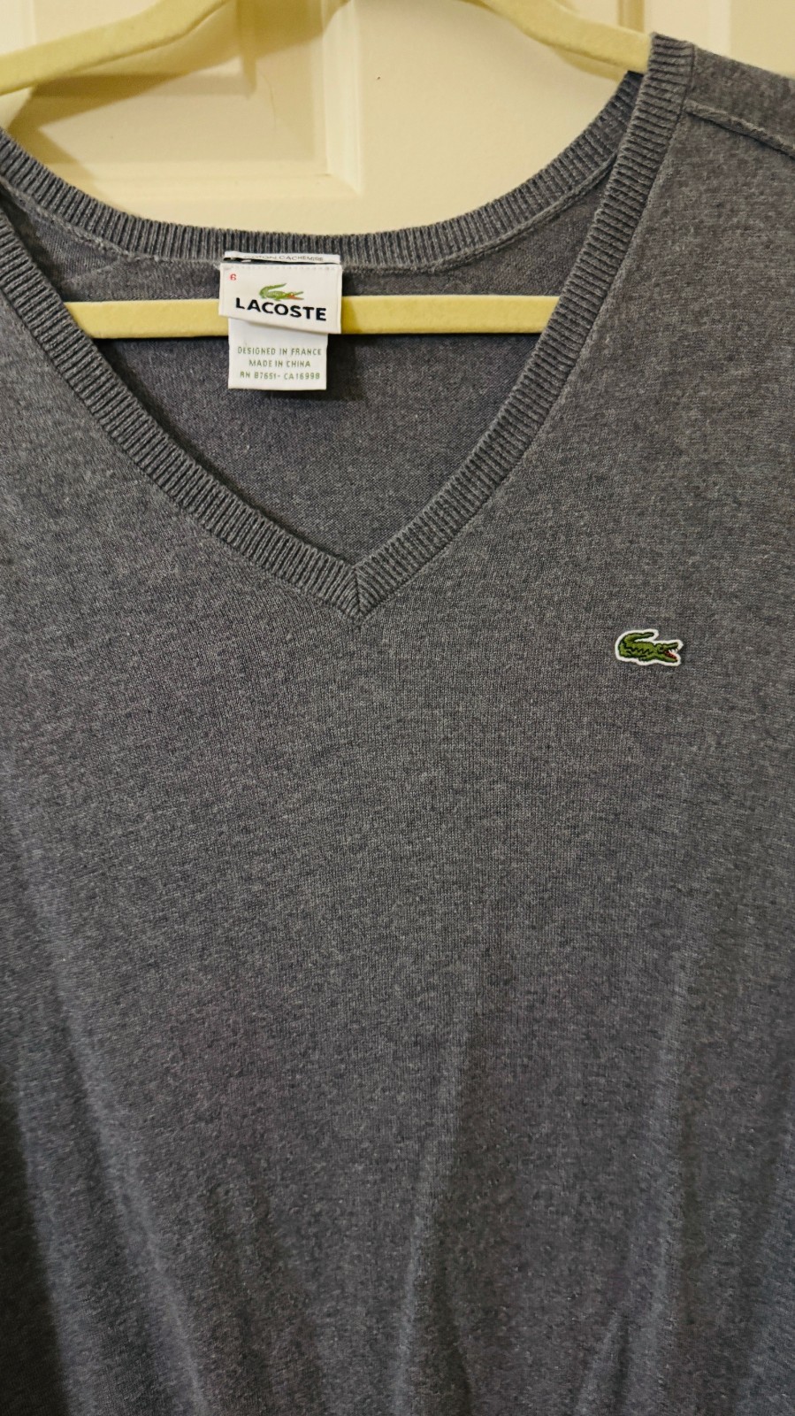 как выглядит LACOSTE SWEATER GRAY SIZE 6 M-L COTTON/CASHMERE фото