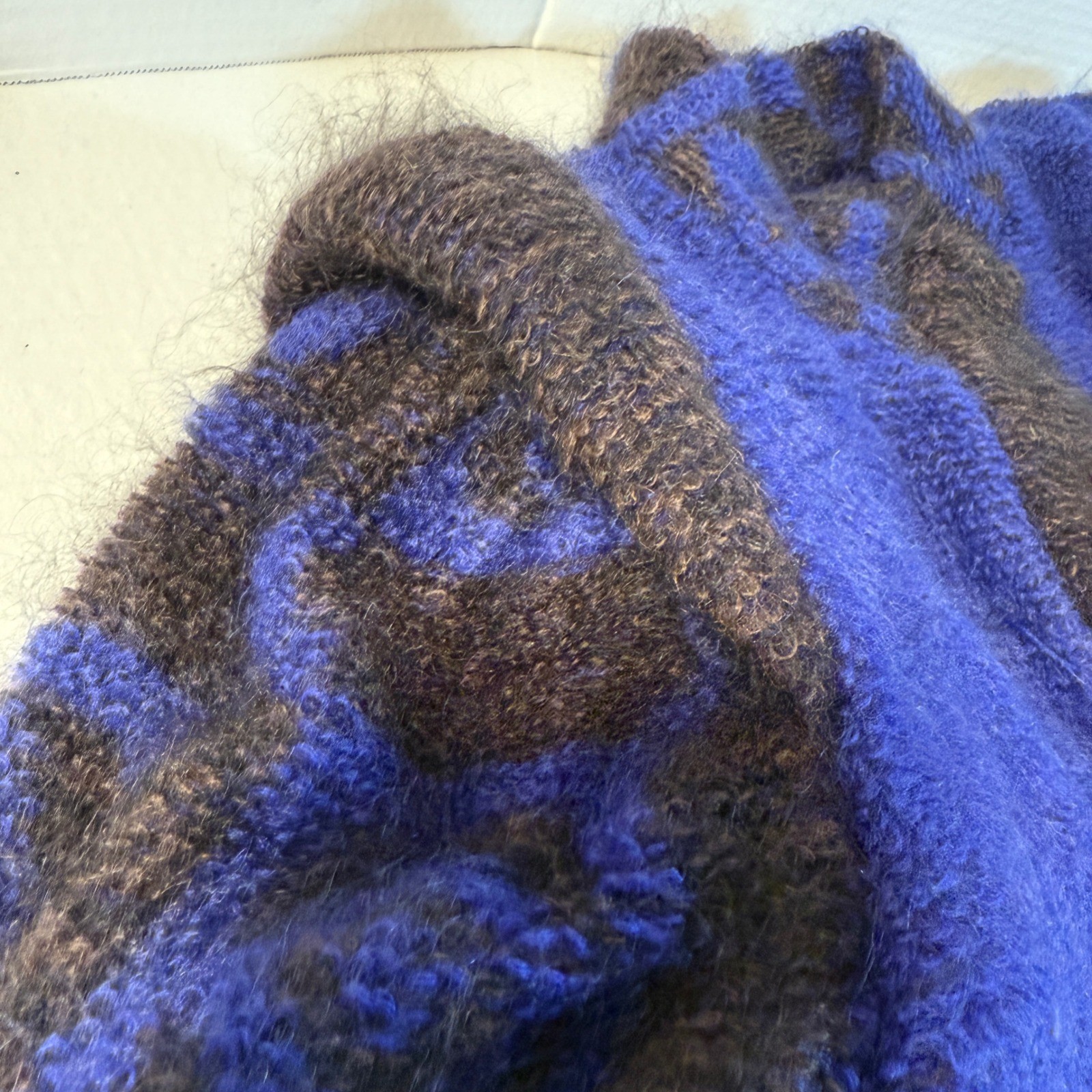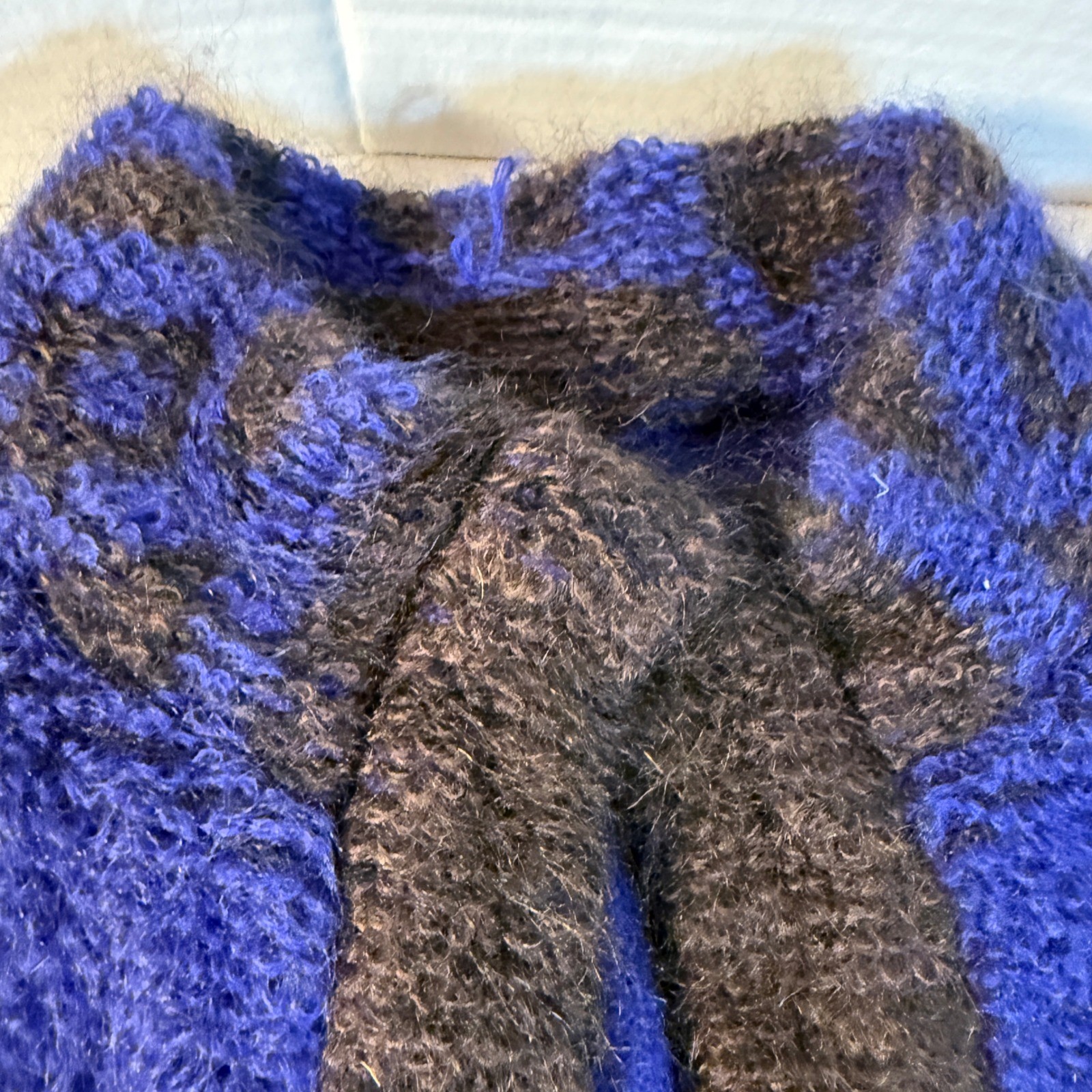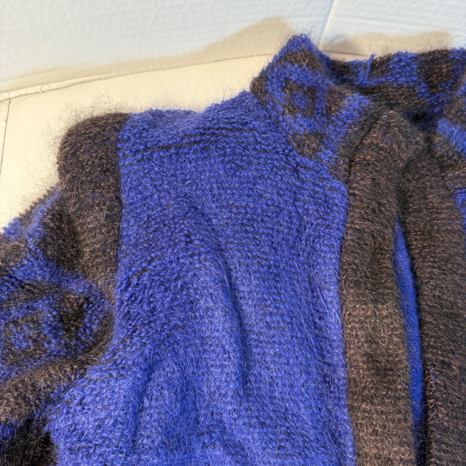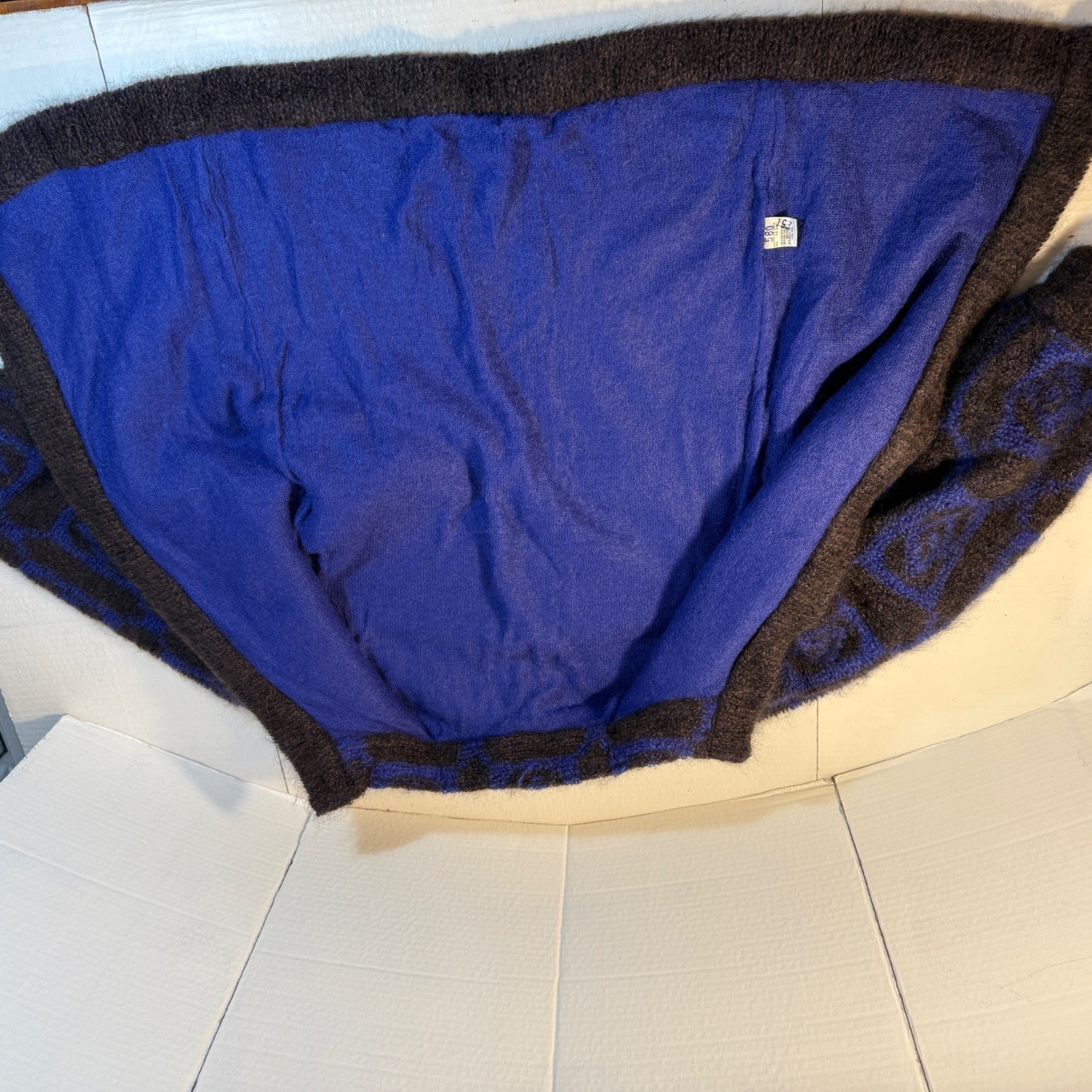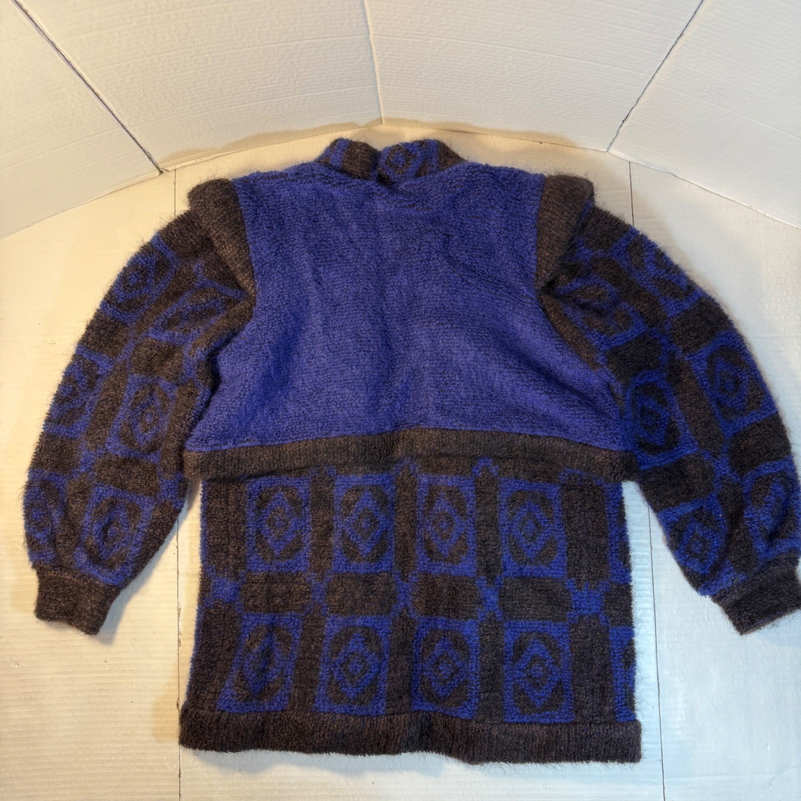 как выглядит VTG 80s Mohair Wool purple Geometric Pattern sz 36 big shoulders Sweater Jacket фото