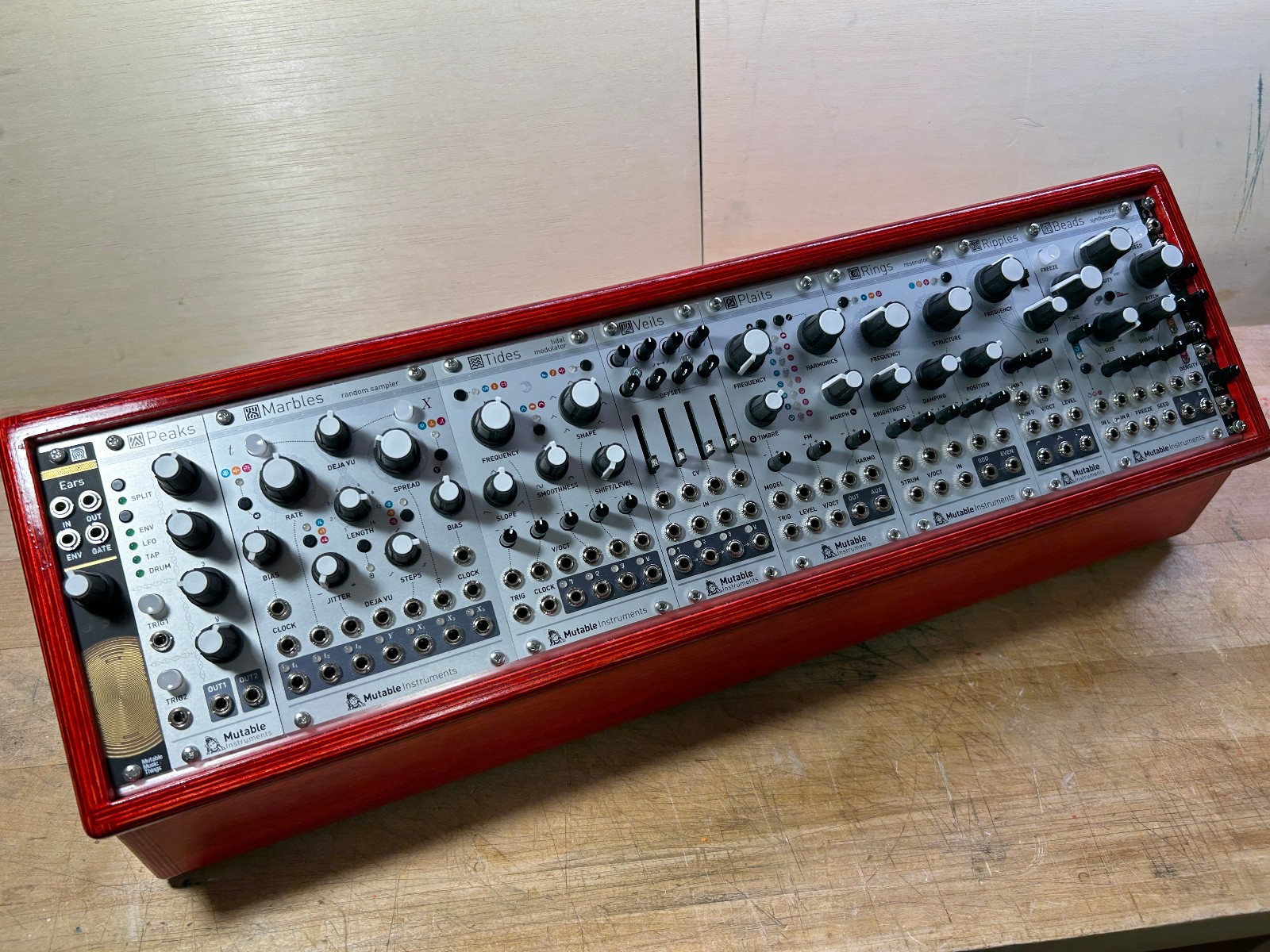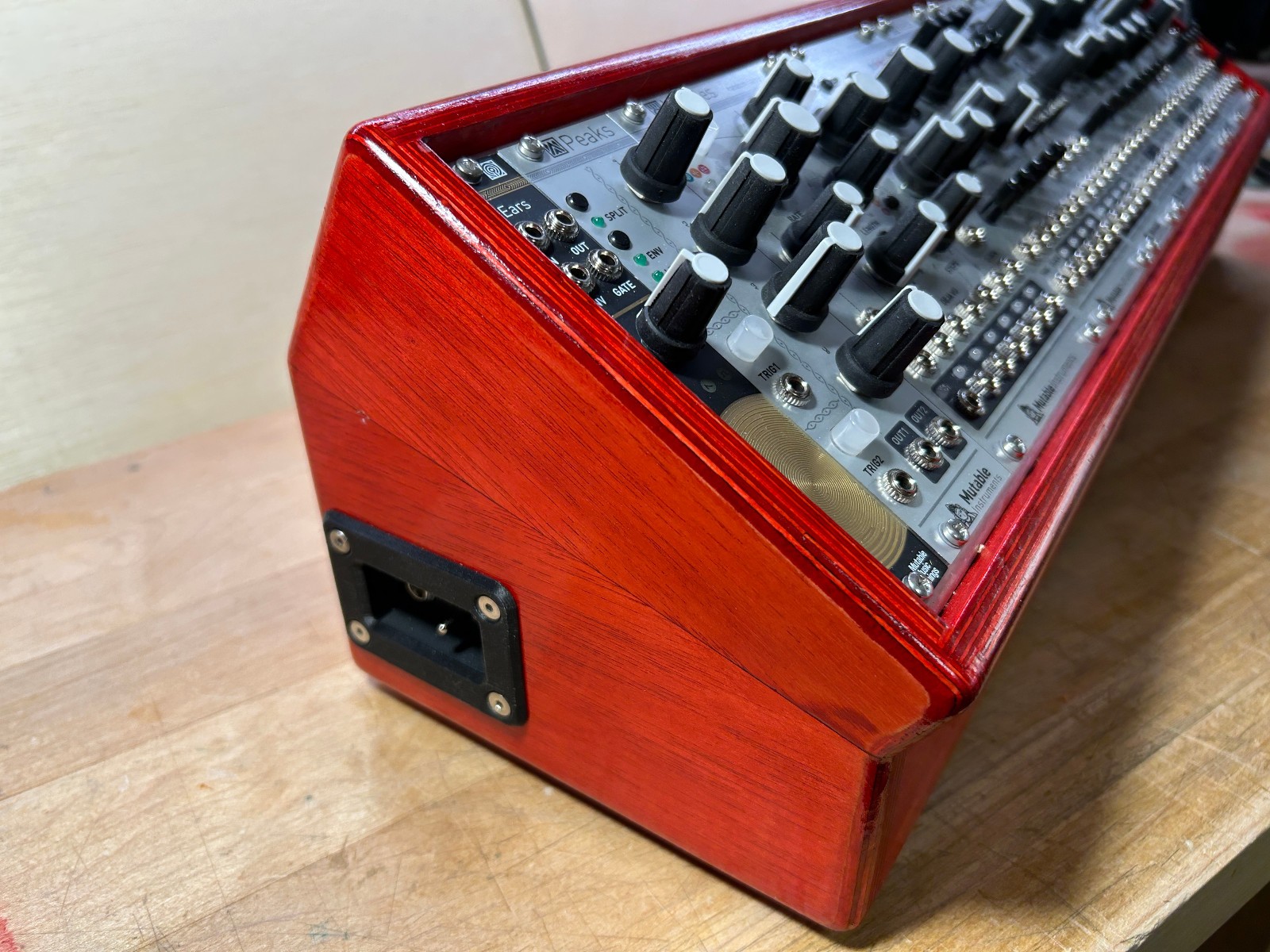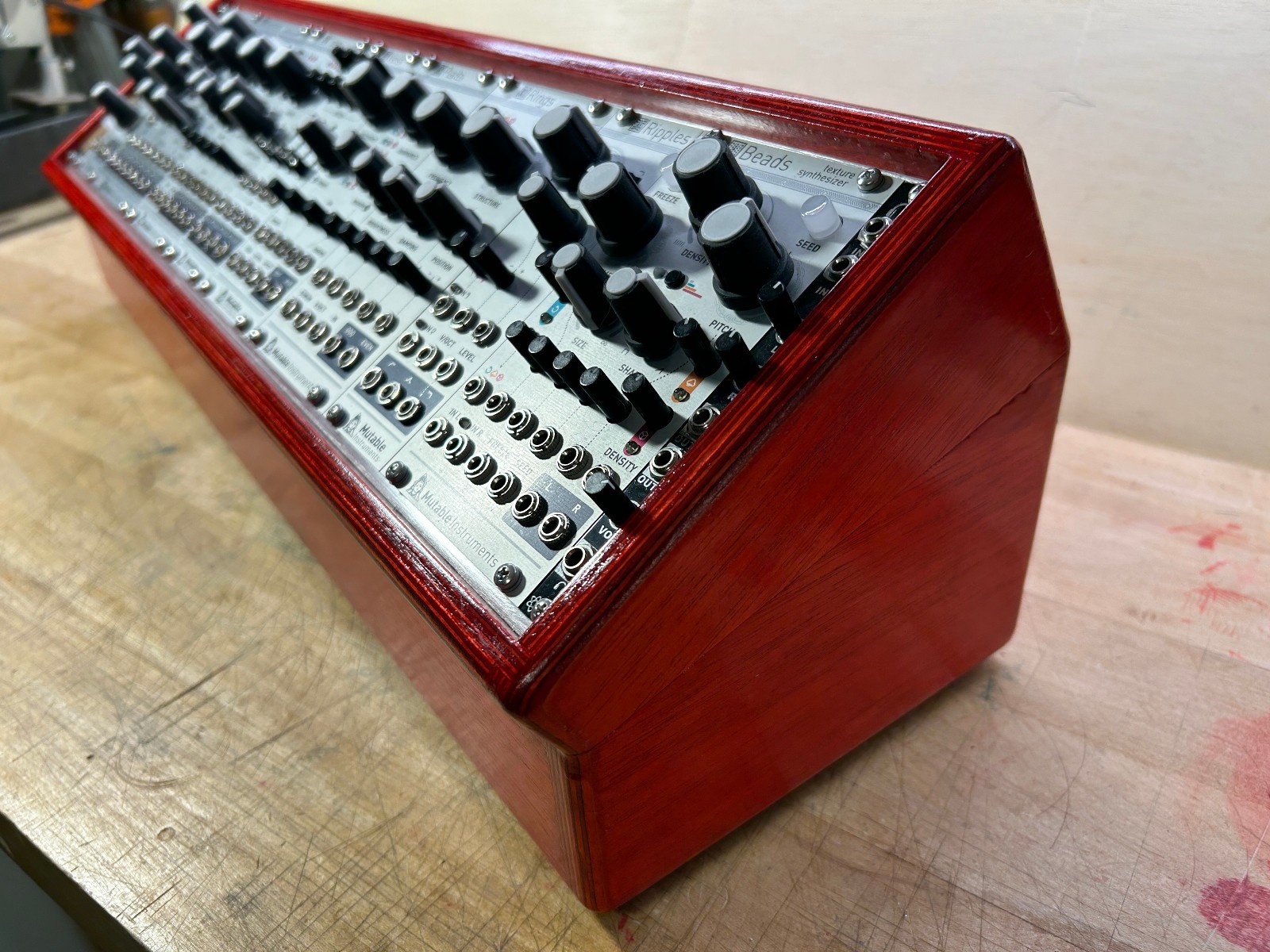 Custom Eurorack 104hp Birch Ply Case, Beautiful Translucent Red Finish