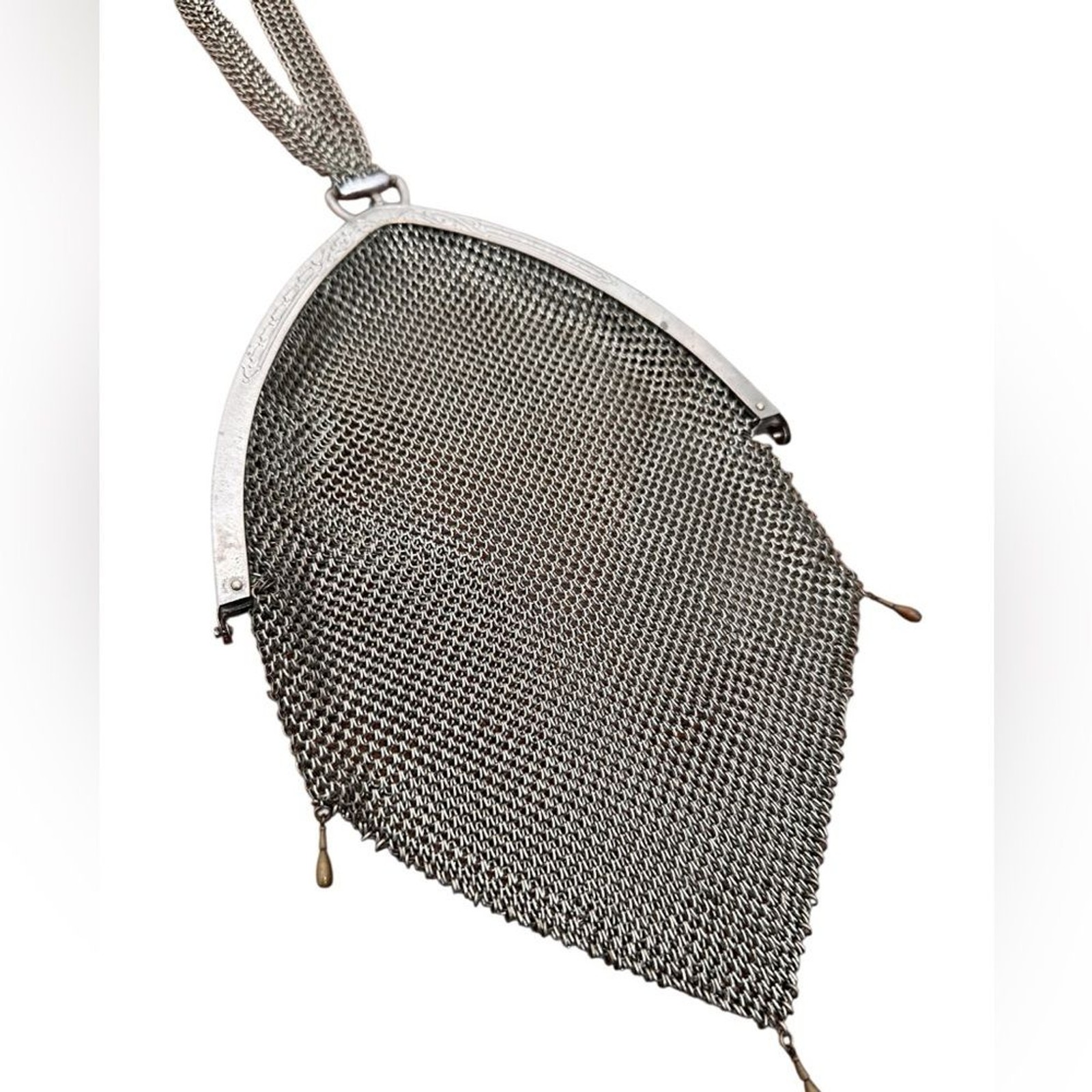 Antique 20s vintage German Sterling Silver Art Deco mesh Chatelaine ladies bag
