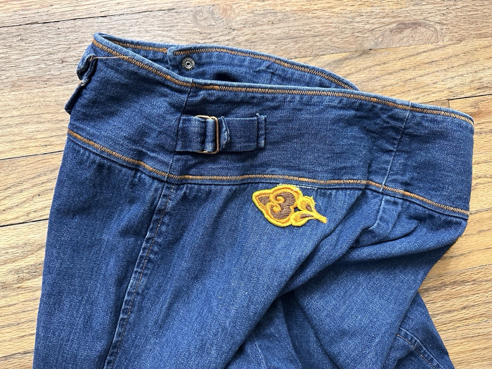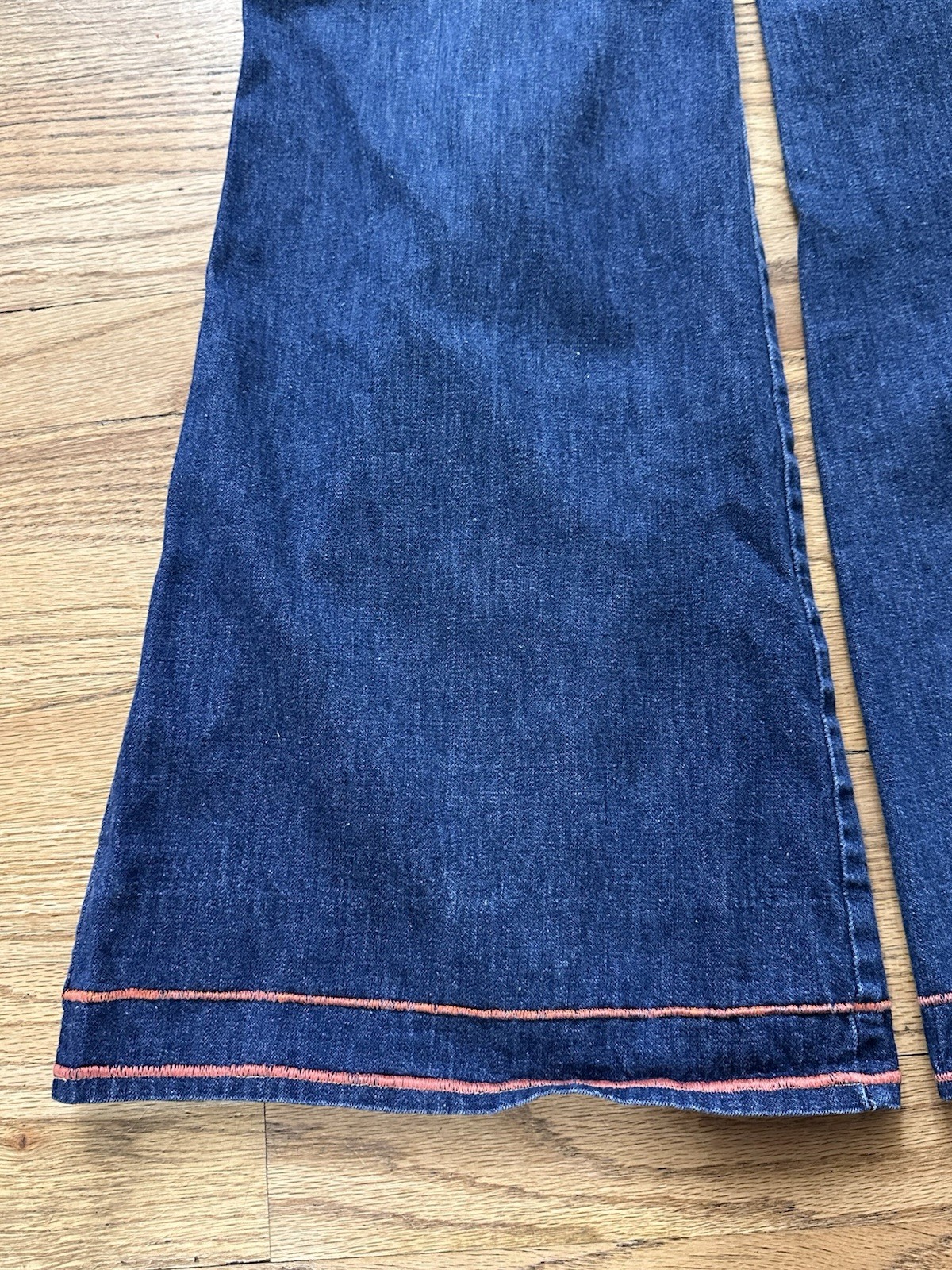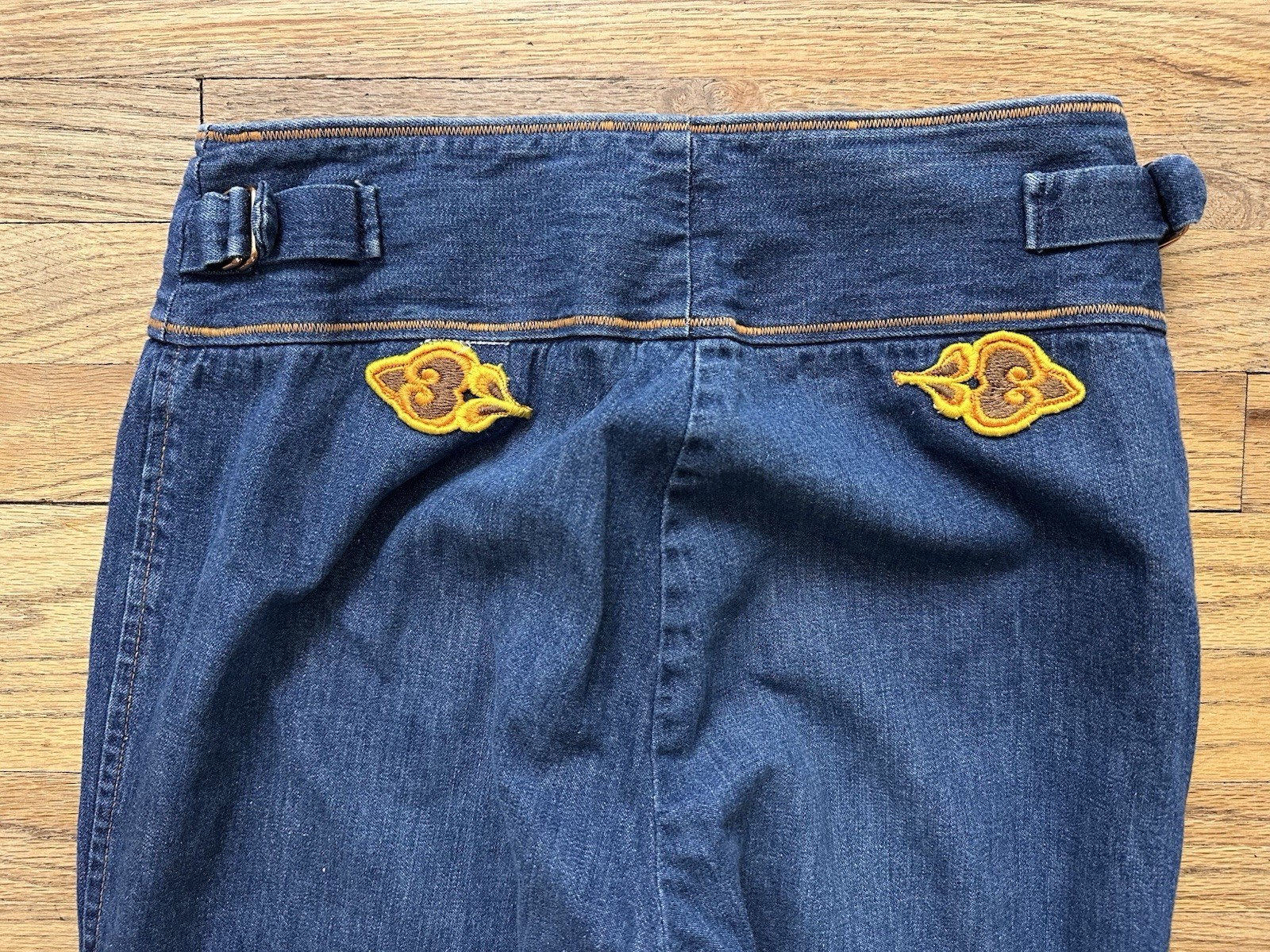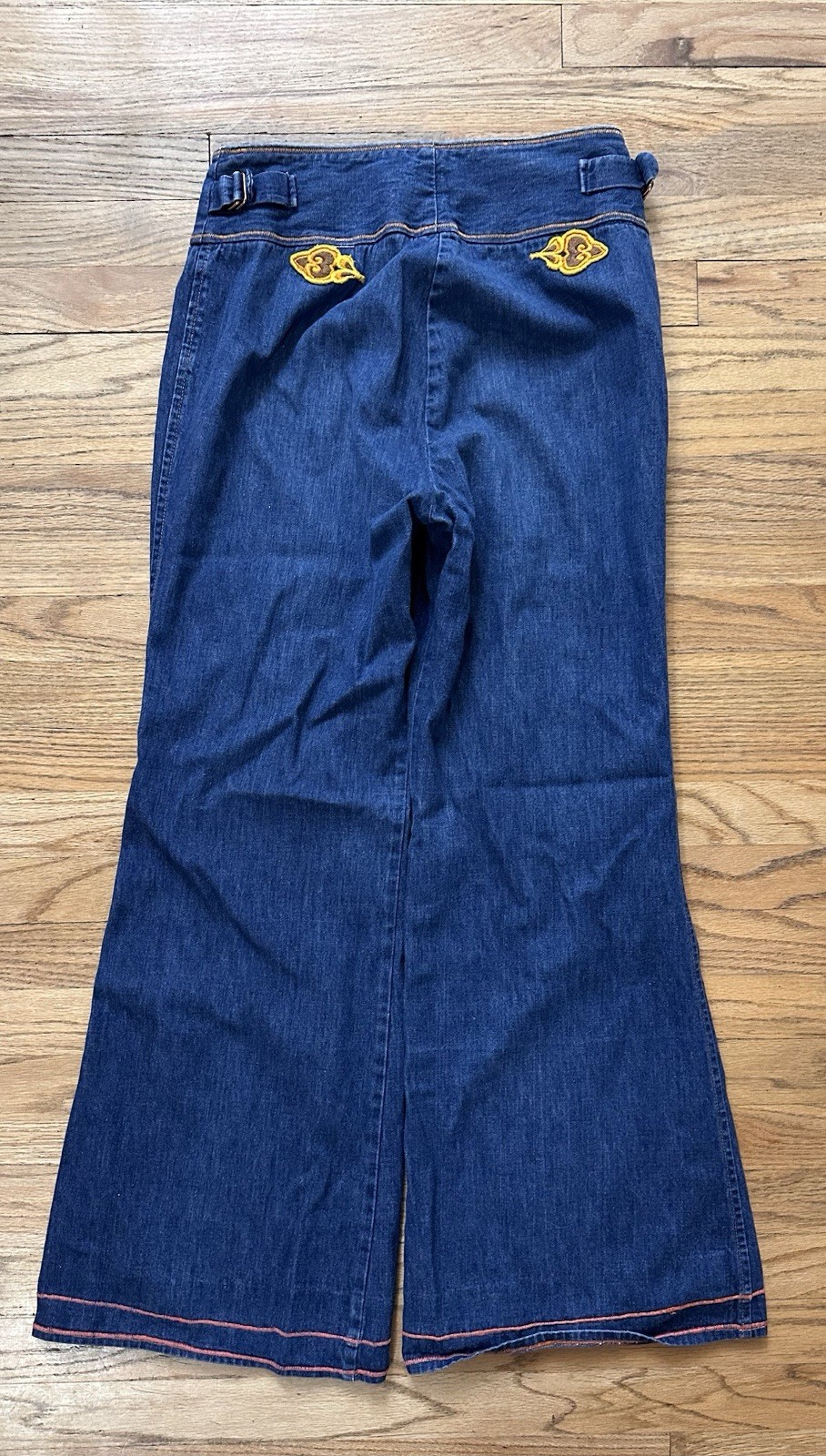 как выглядит Vintage 1970s Bell Bottom Jeans With Orange Stitching And Appliqu s High Waisted фото