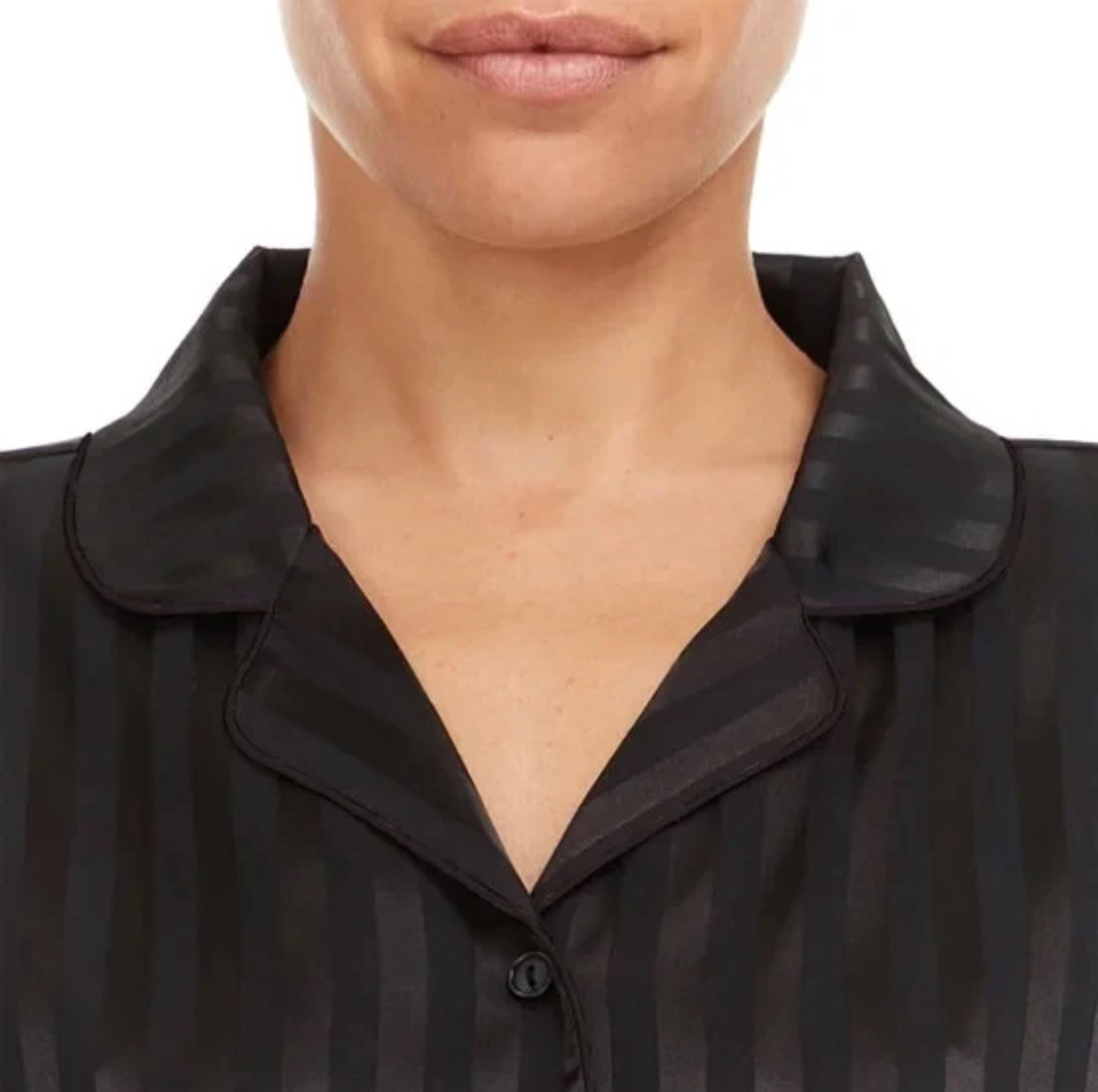 как выглядит Flora Nikrooz 2 Piece Relaxed Fit Soft Satin Notch Collar Pajamas Black Size XL фото
