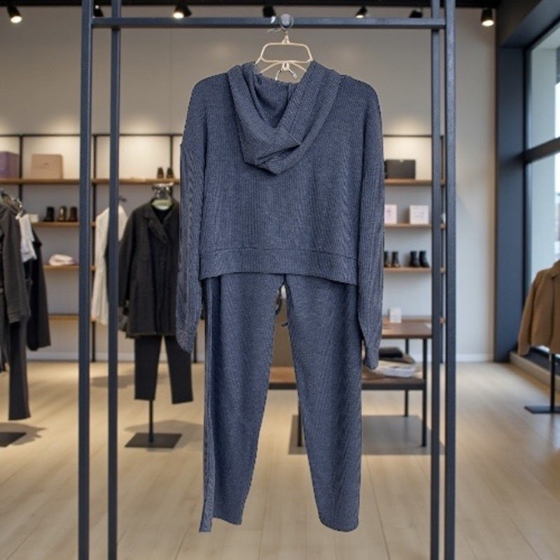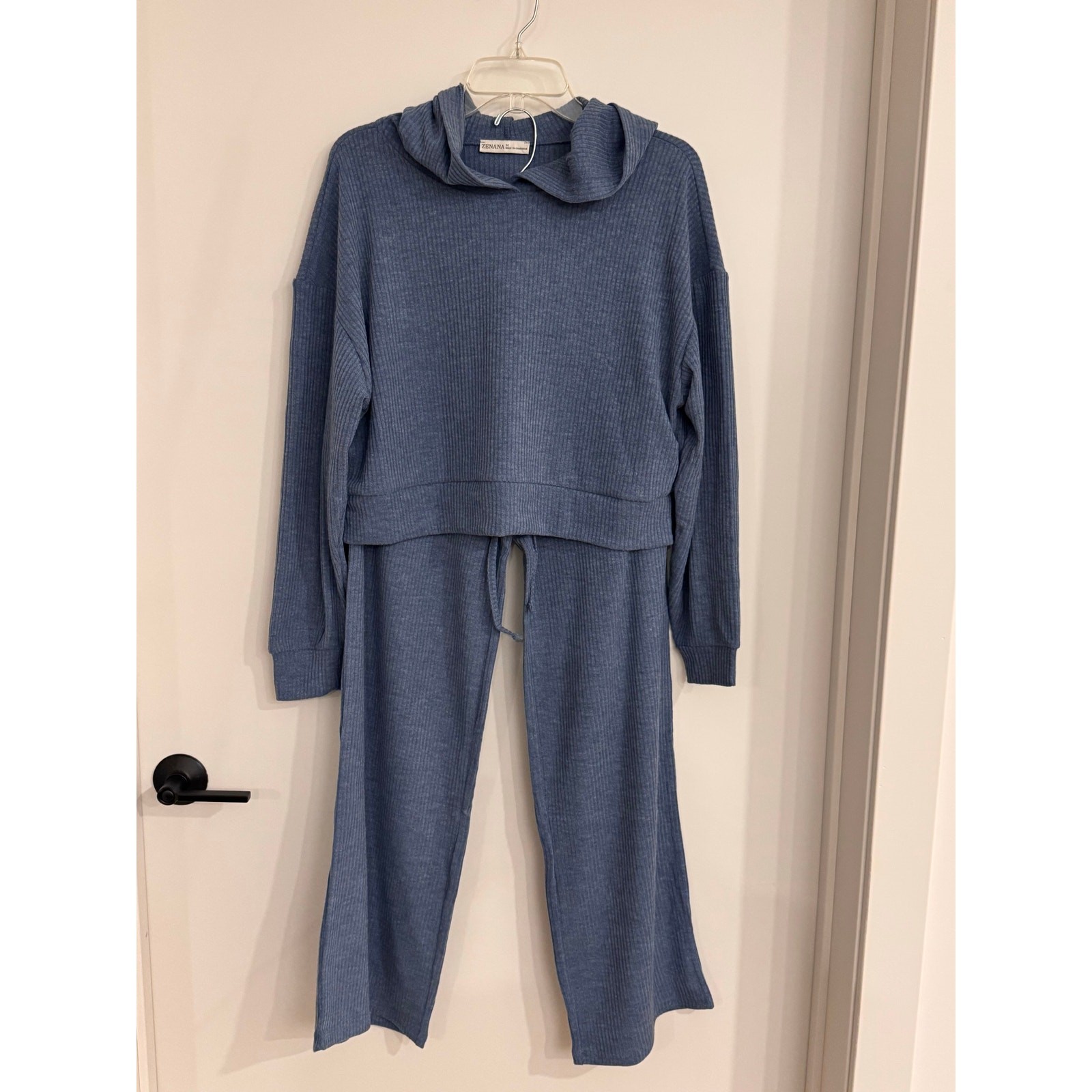 как выглядит Zenana Ribbed Lounge Set Blue Size M NWT фото