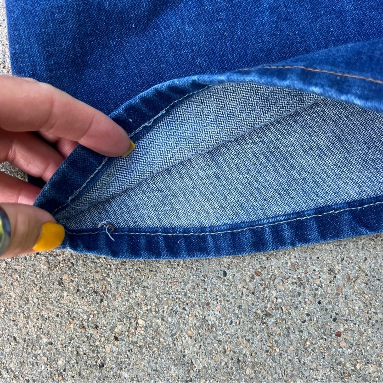 как выглядит Vintage 70s Wrangler No Fault Bell Flare Cowboy Cut Jeans 945 36x32 фото