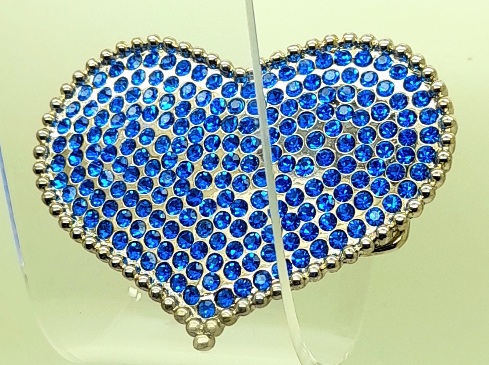 Handmade modern style heart shape with blue Rhinestone fancy metal Belt Buckle