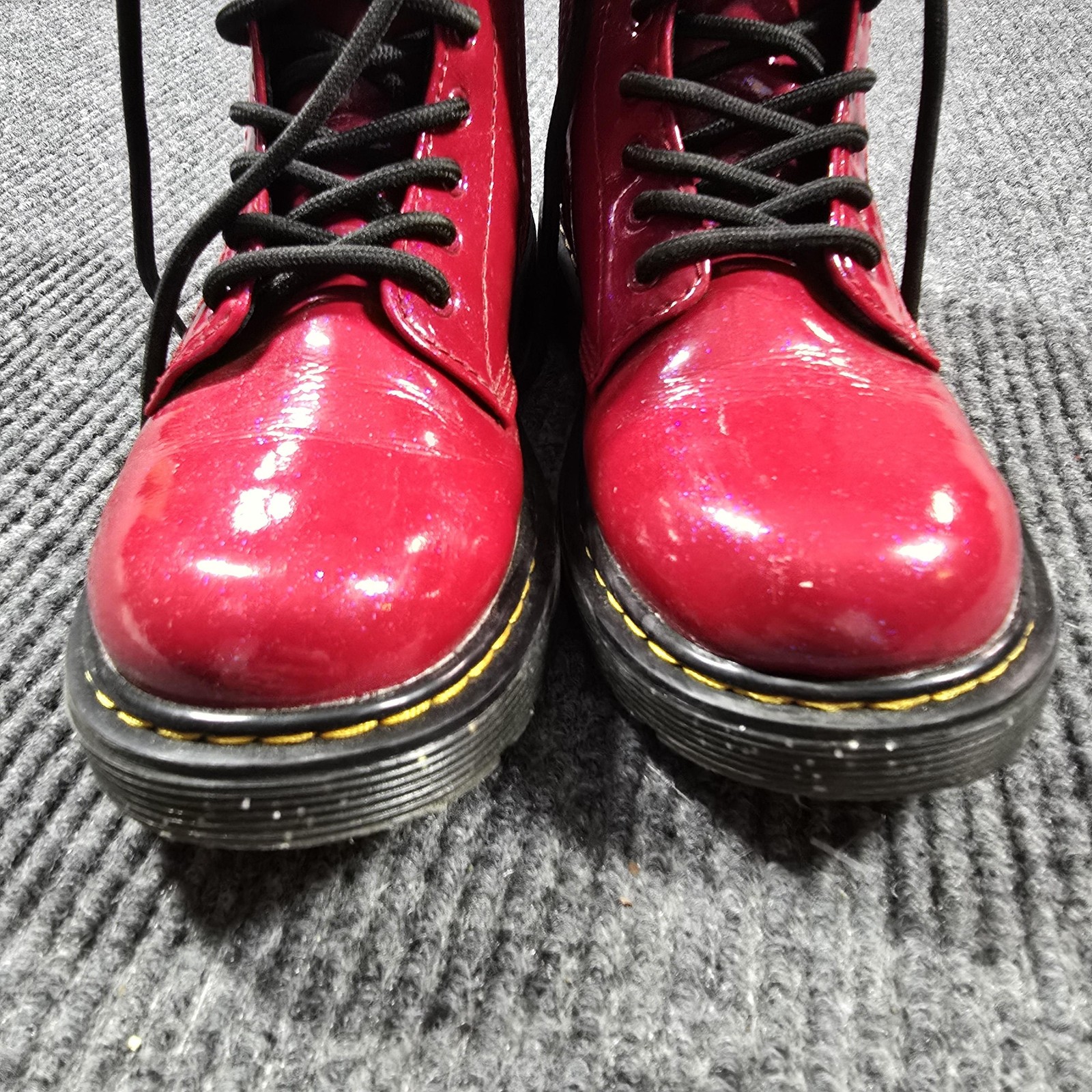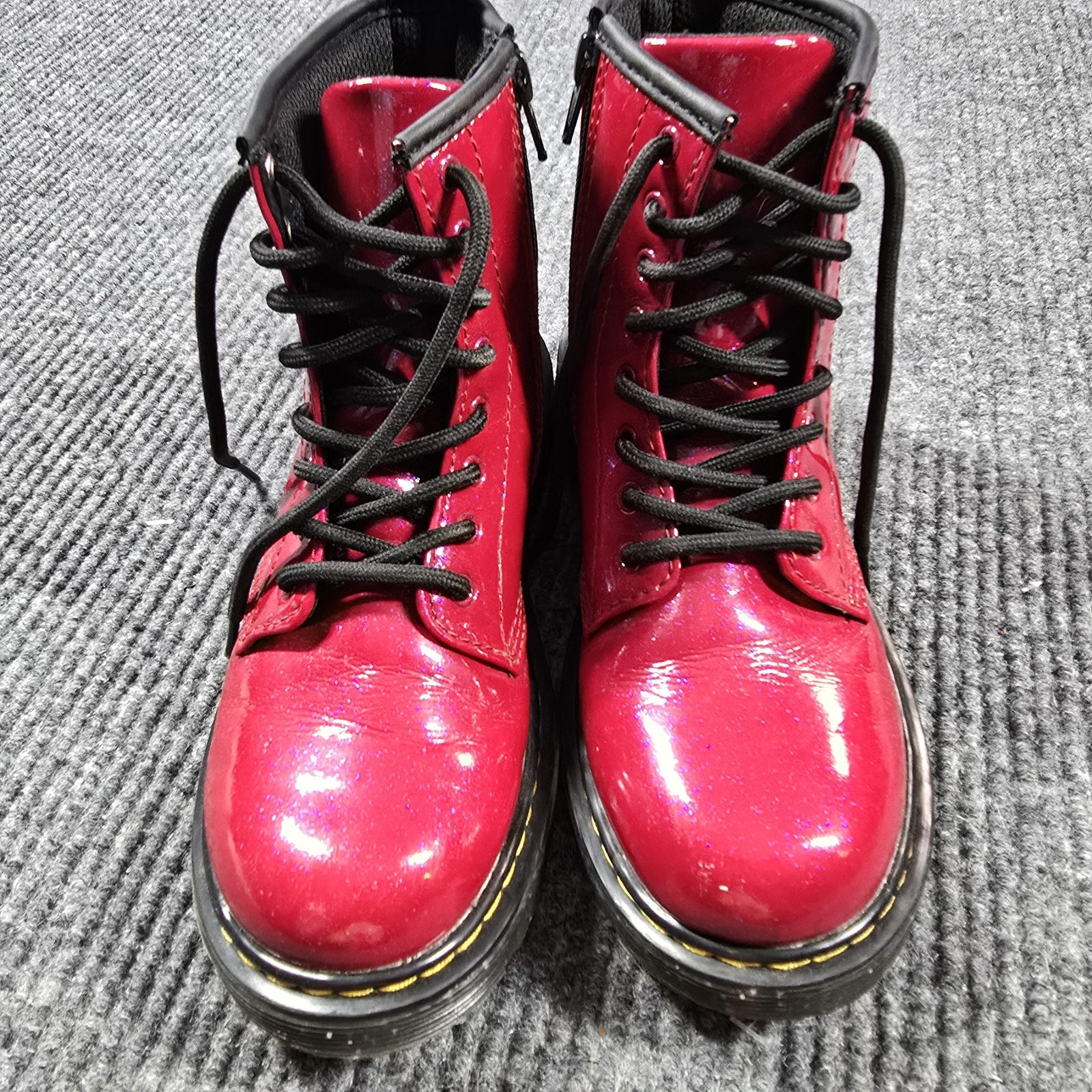как выглядит Dr. Martens 1460 Boots Womens Size 3 US Pink Glitter Patent Leather Lace Up Zip фото