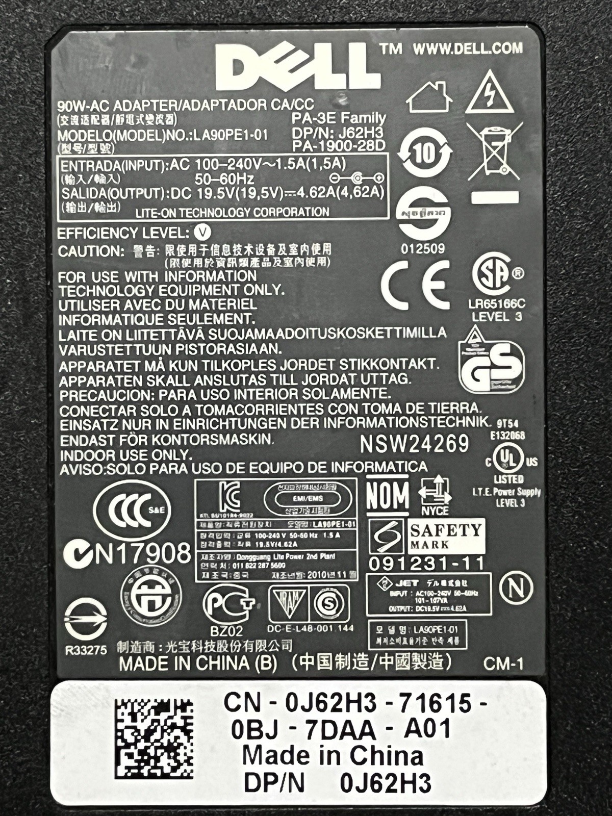 Genuine DELL 90W LA90PE1-01 AC Adapter 19.5V 4.62A Power Charger with Power Cord