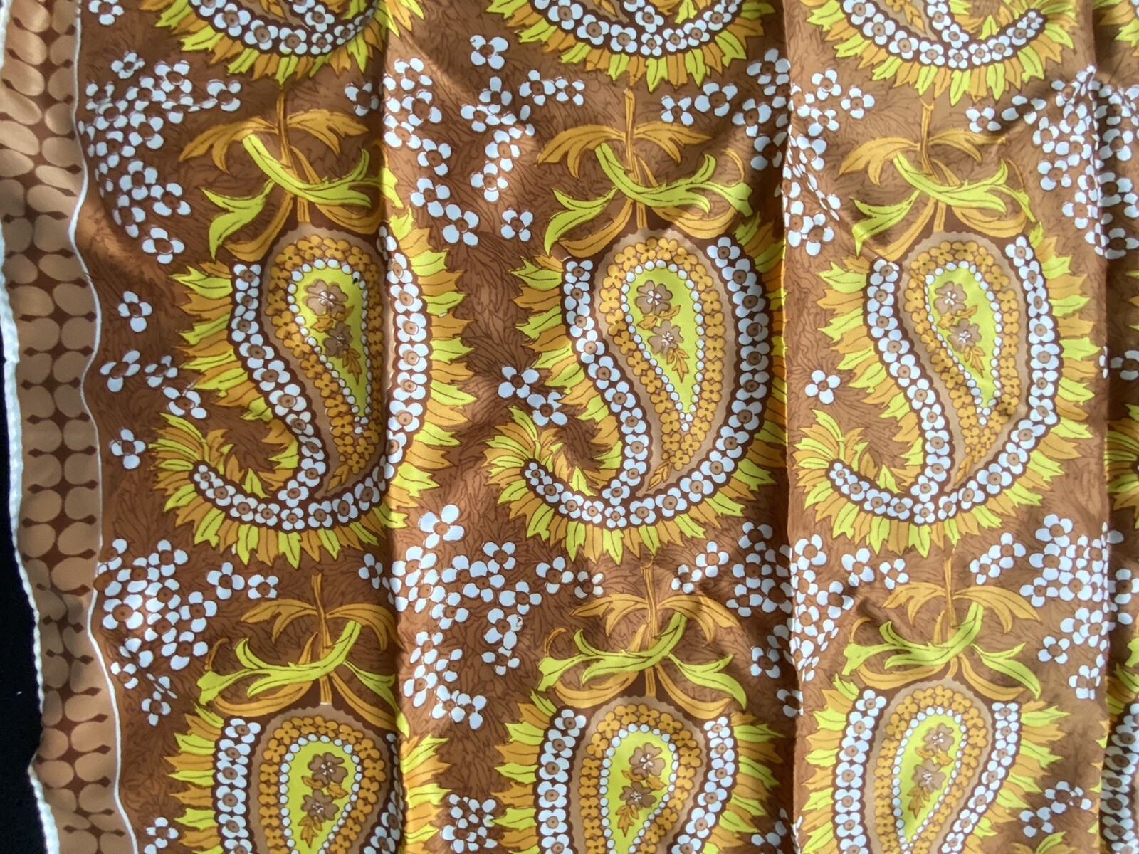 как выглядит Vtg Vera Paisley Scarf Orange Yellow Brown 23" Square MCM Costume Hippy фото
