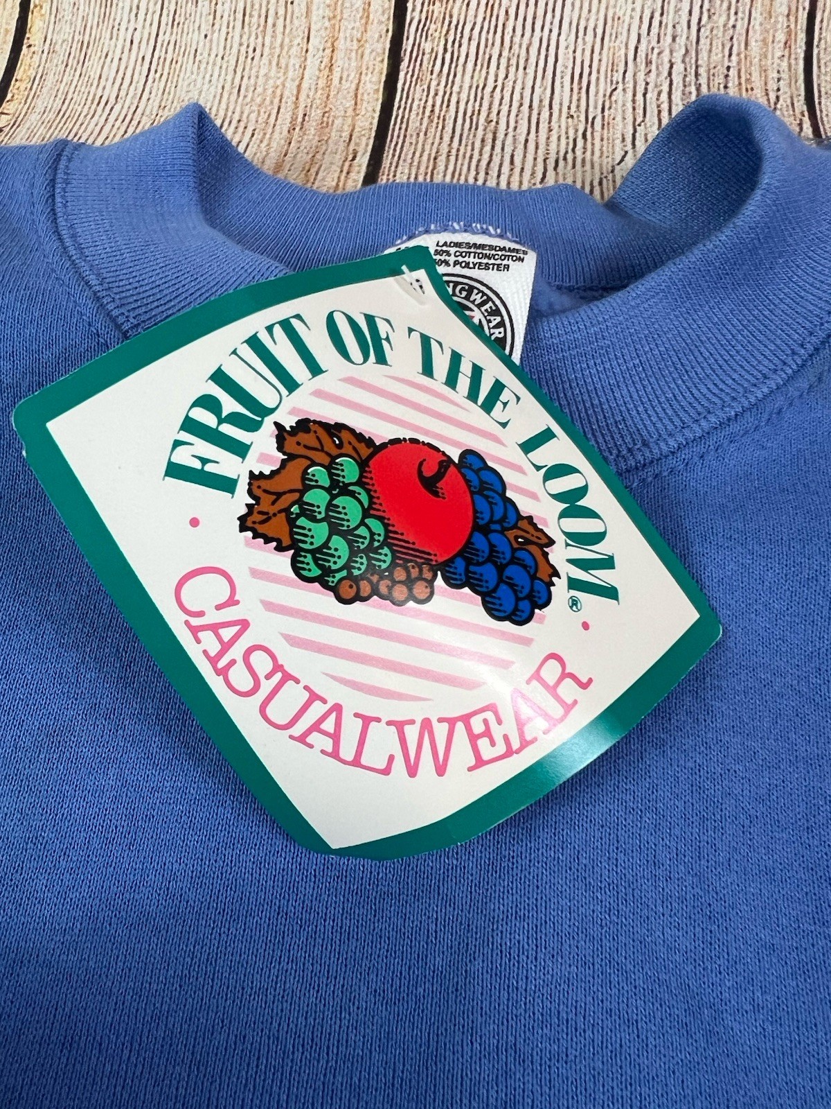 как выглядит Women s Vintage Fruit Of The Loom With Tags Blank Blue Crewneck Sweatshirt Med фото