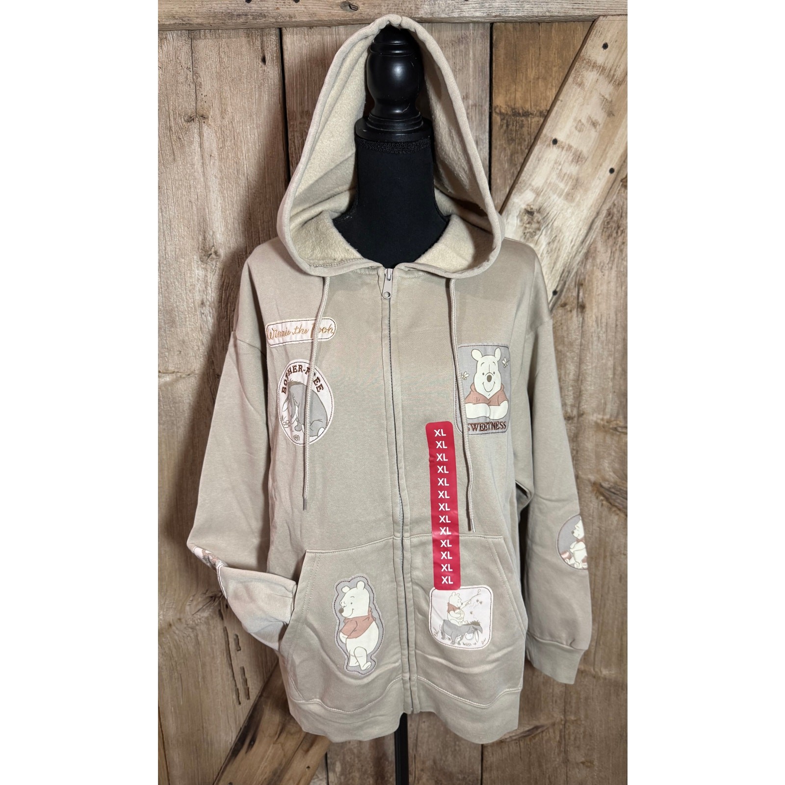 Disney Winnie the Pooh Multi-Patch Women's Full Zip Hoodie Sz XL Cream NWT