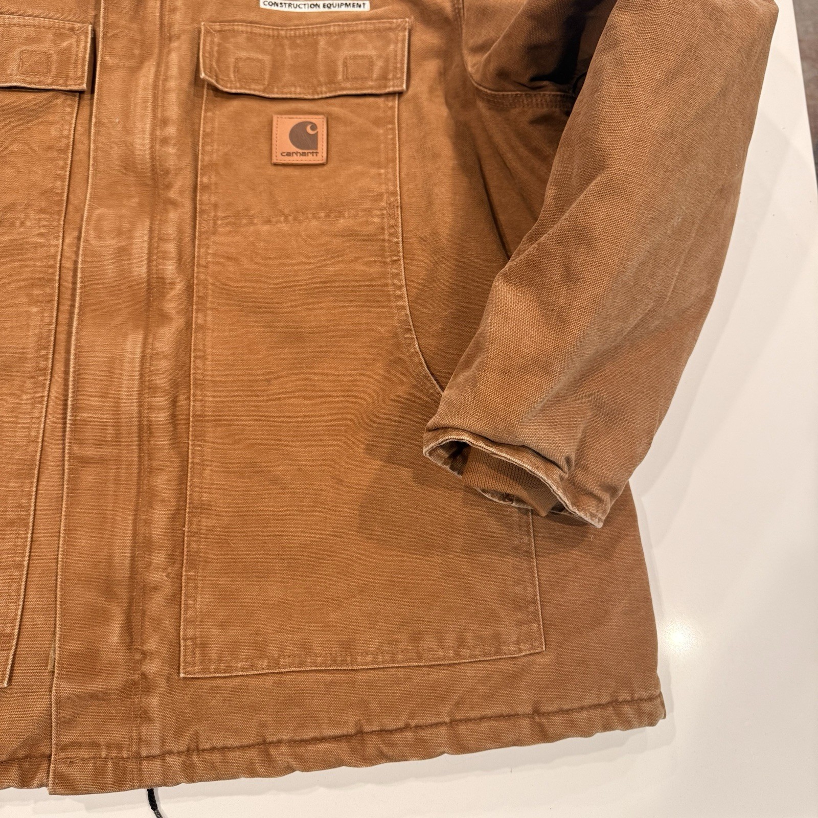 как выглядит Carhartt Arctic Quilt Lined Sandstone Distressed Canvas Jacket Coat C26-211 XL фото