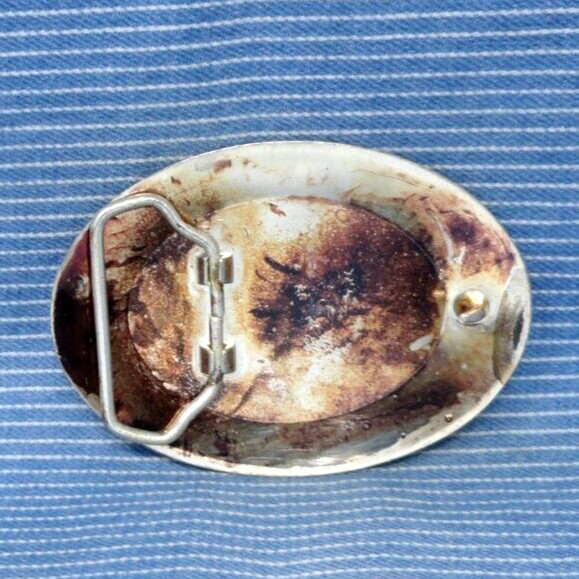Bull Rider Cowboy Belt Buckle Western Etched Copper Inlay Vintage .TYC243