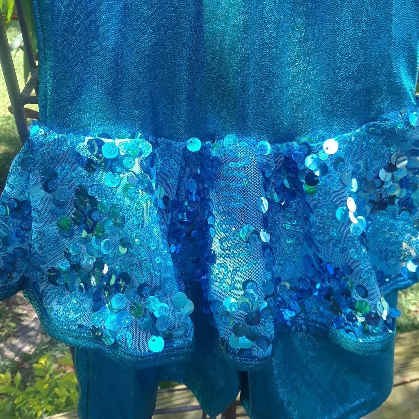 как выглядит CURTAIN CALL Dance Costume Child Sz CSM Teal Blue Leotard Skirt Shorts E2167 фото