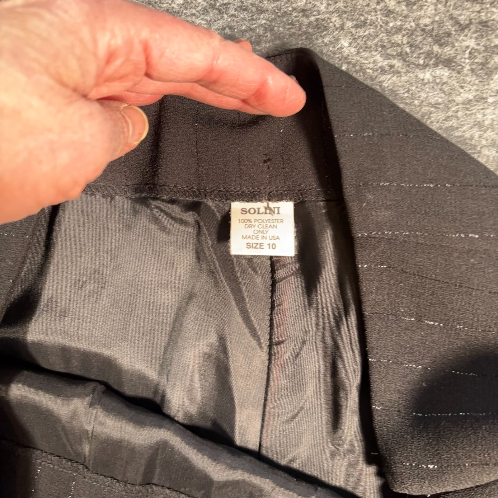 как выглядит Solini Dress Pants Womens 10 Black Silver Pinstripe Crepe Lined USA 1980s 1990s фото