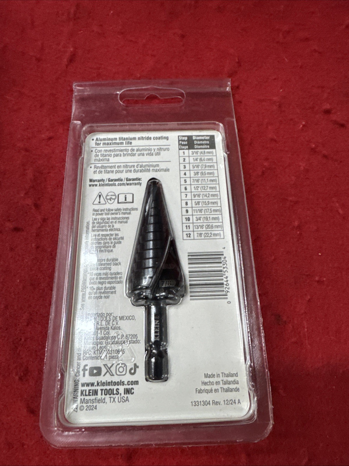 Klein Tools QRST14 Step Drill Bit, Quick Release, Spiral Flute, 3/16 to 7/8 In