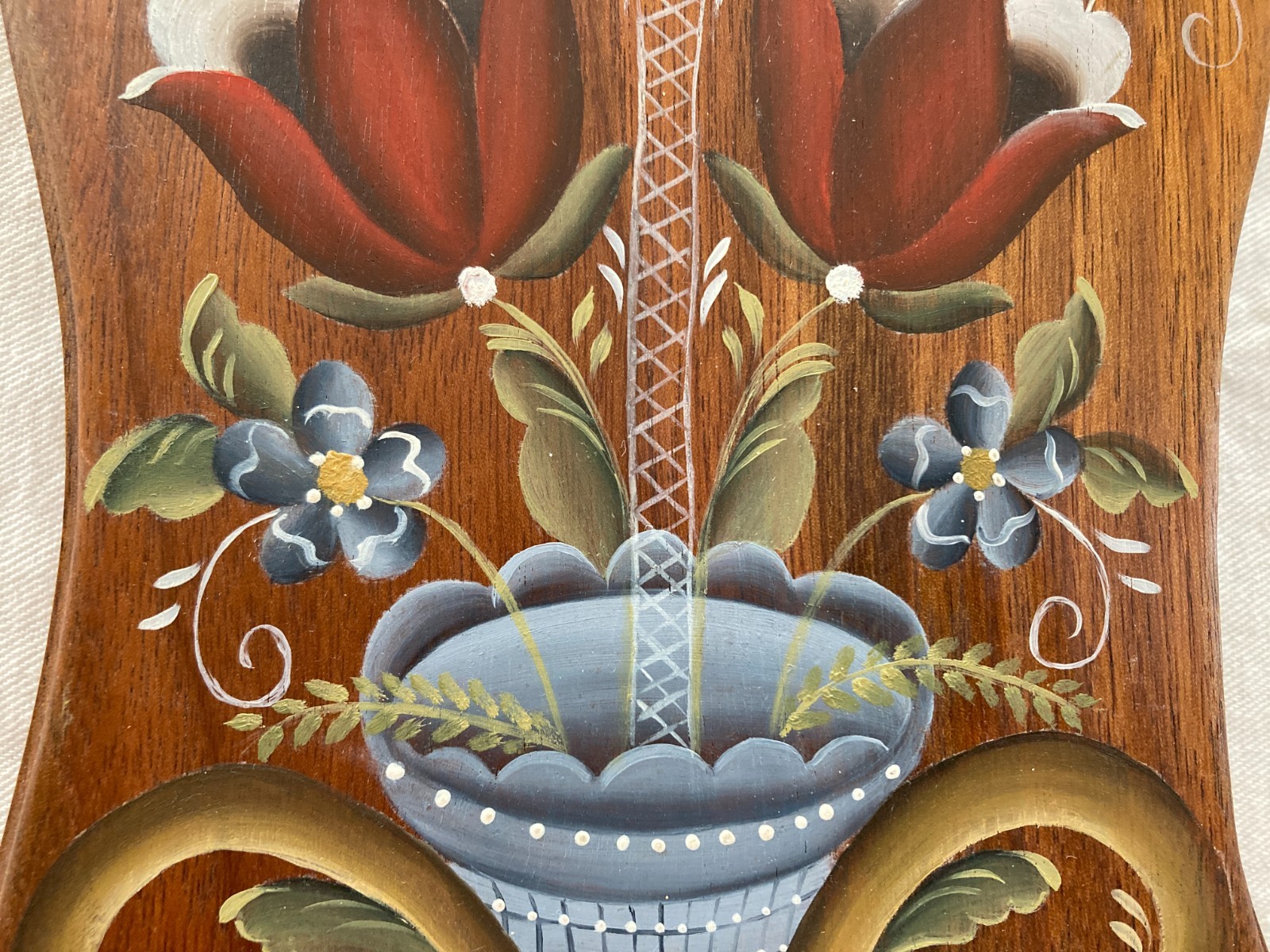 • 2 Vintage Norwegian Folk Art Rosemale Hand Painted Wood Plaques 21" Wall Decor