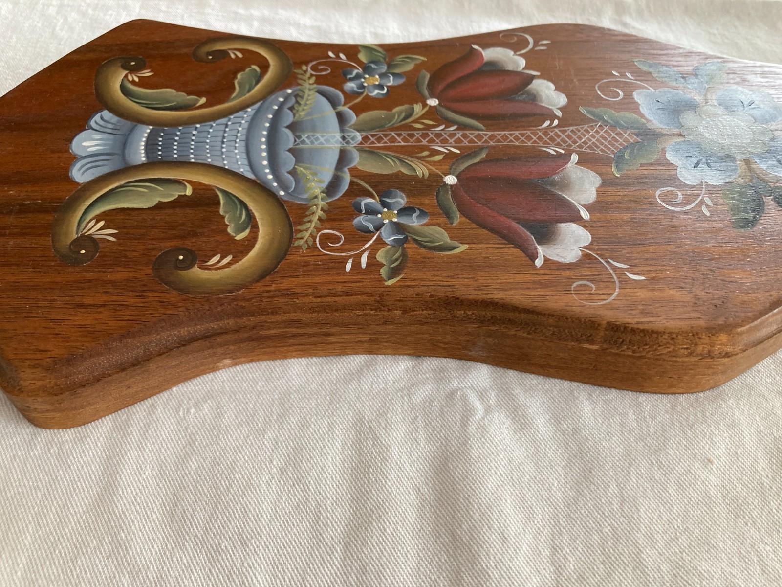 как выглядит 2 Vintage Norwegian Folk Art Rosemale Hand Painted Wood Plaques 21" Wall Decor фото