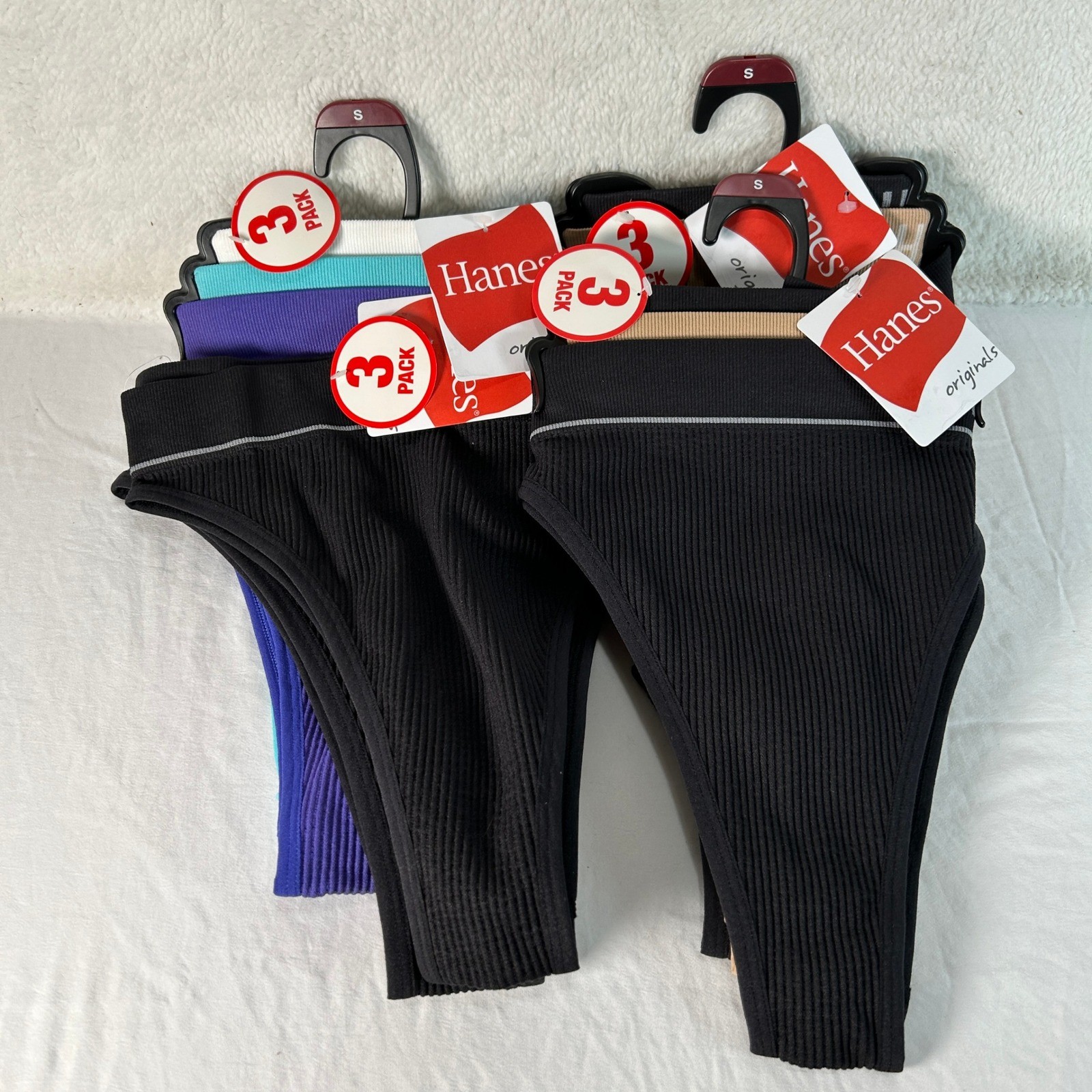 6 Pairs Hanes Originals Womens Thong Underwear Panty Black Purple Tan Size S NWT