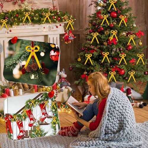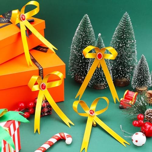 12 Pcs Gold Metal Bow Ornaments with Red Gem 3.4x5.6 Clip-On Christmas Tree