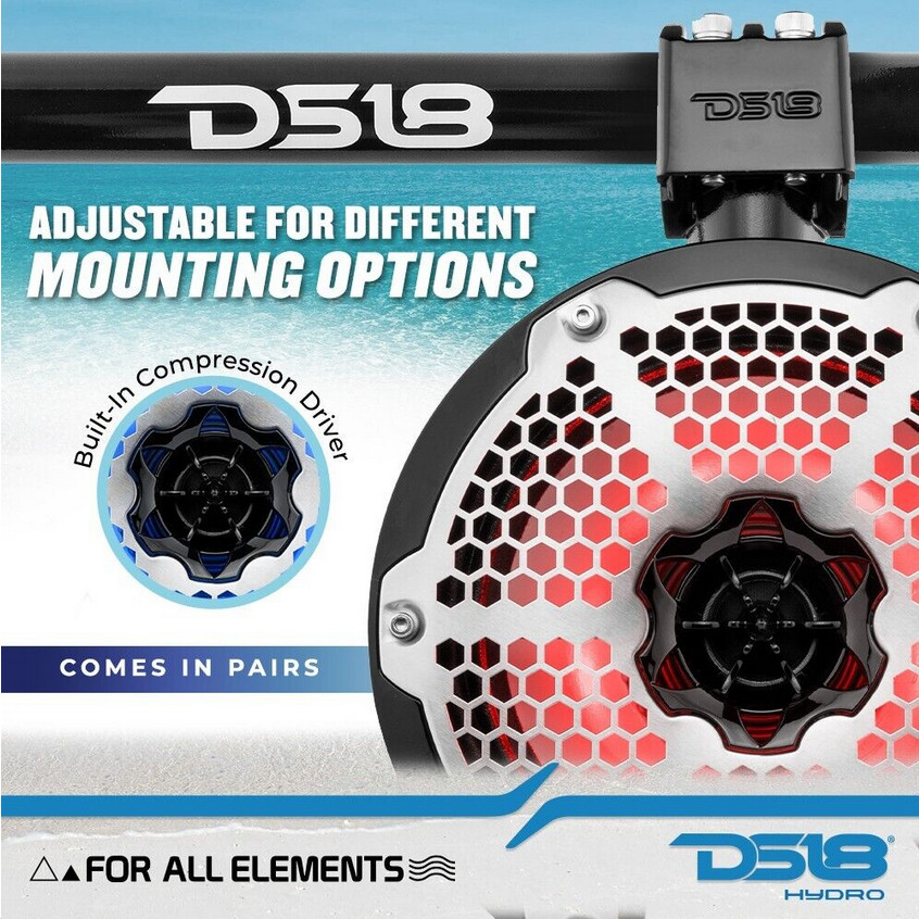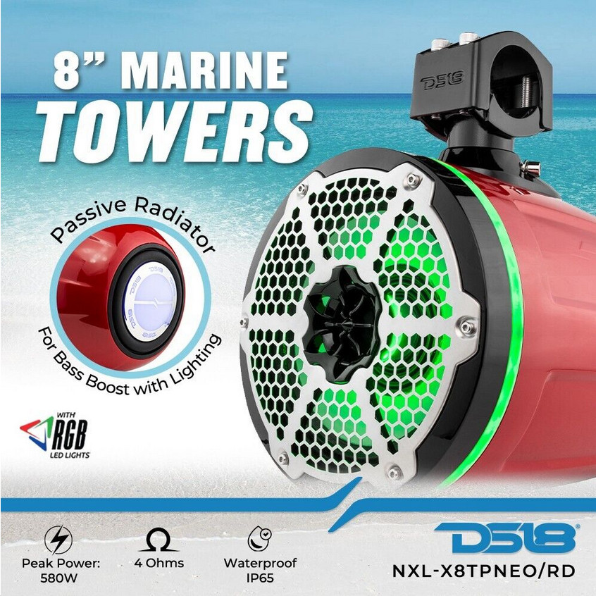 2x DS18 8 Tower Speakers with LEDs - 125w Rms 4-ohm Red 2-Way Pods NXL-X8TP
