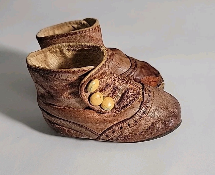 как выглядит Antique Victorian Baby Childs Doll Leather Button Up Boot Shoes фото