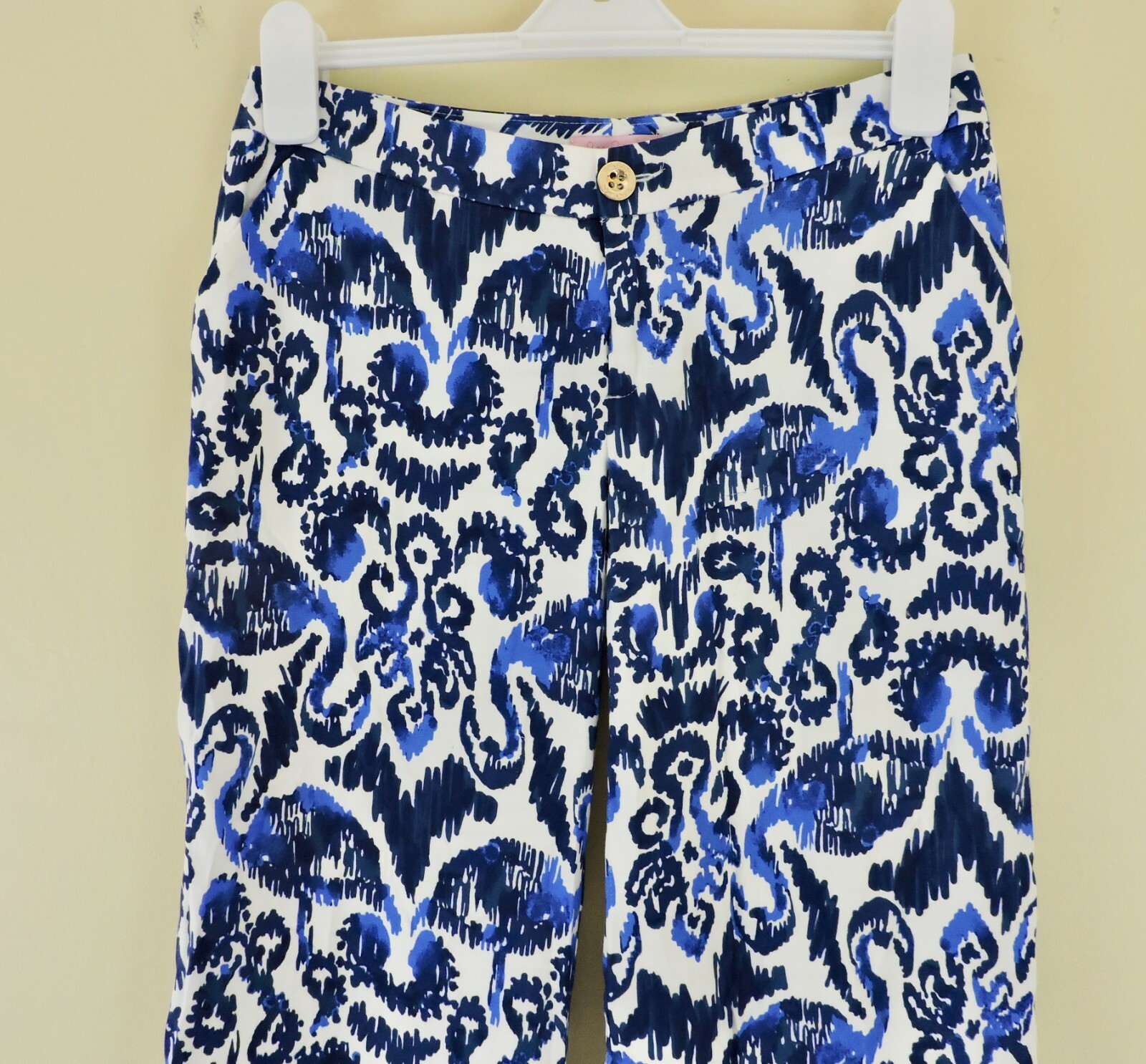 LILLY PULITZER LELA CROP Sz 2 Resort Navy Beach Bathers Wide Leg Crop Pants EXC