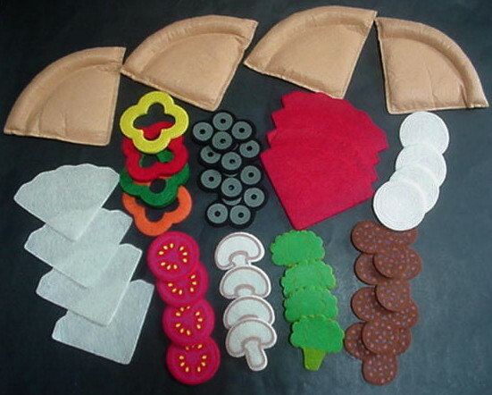 как выглядит Melissa Doug Felt Food MIX n MATCH PIZZA COMPLETE SET Pan Delivery Box Toppings фото