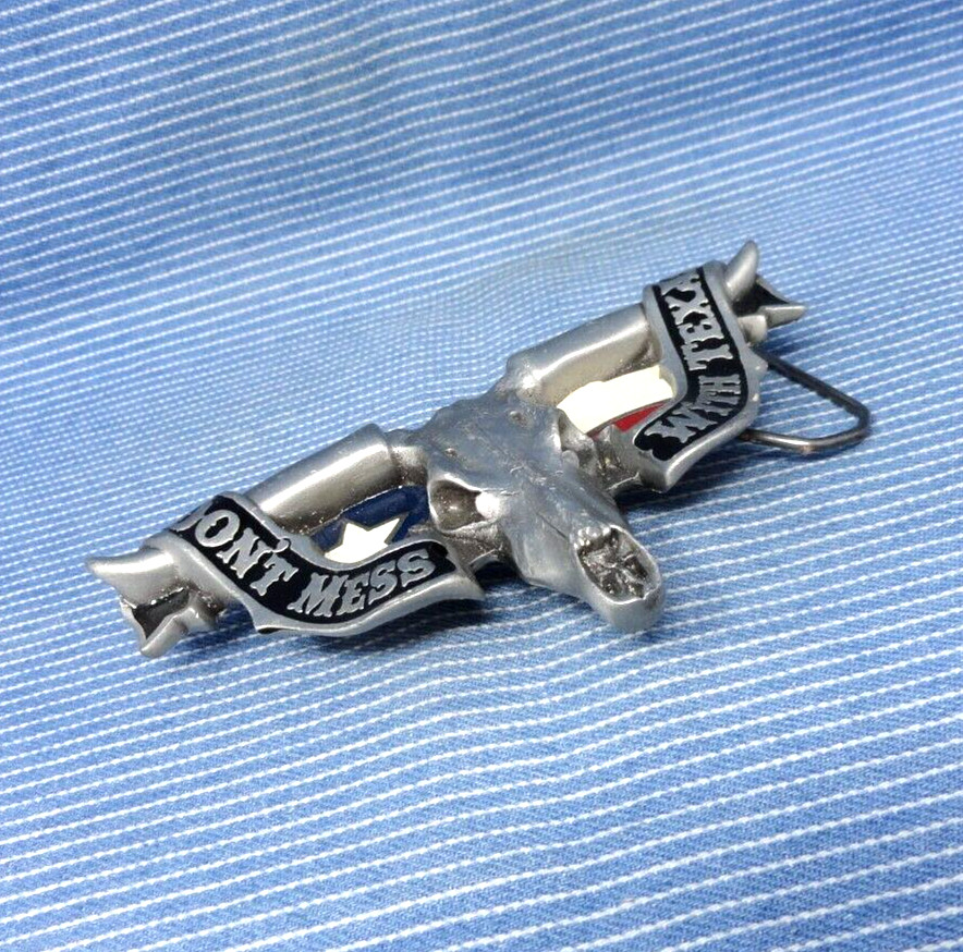 Steer Skull Flag Dont Mess With Texas Belt Buckle Large Vtg 90s GAP .TYC264
