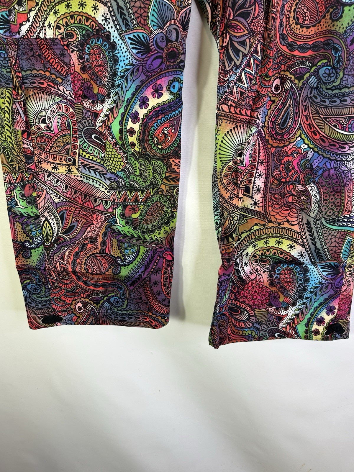 Vintage 90s Streetwear Pants Womens Medium Rainbow Paisley Baggy Crop Cargo