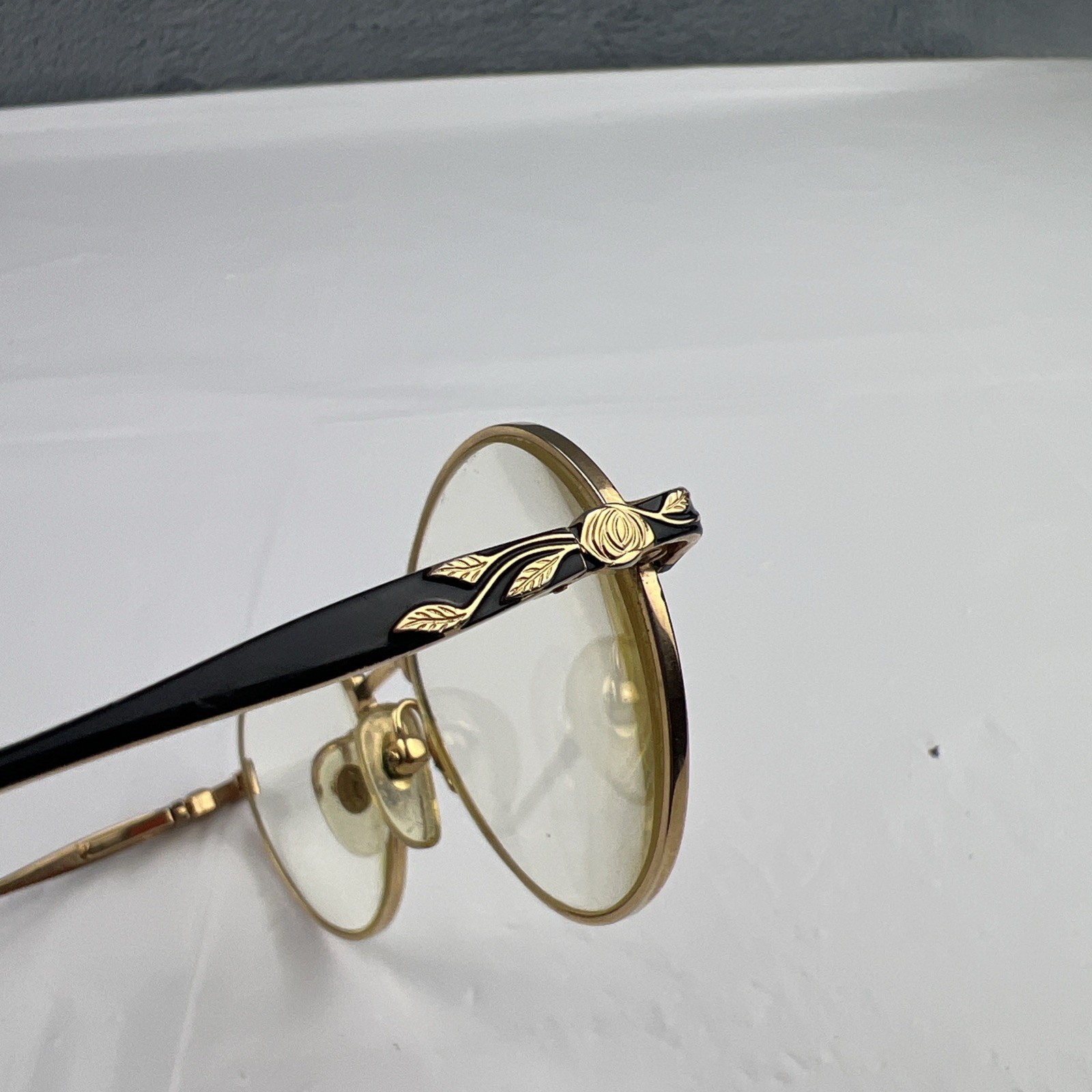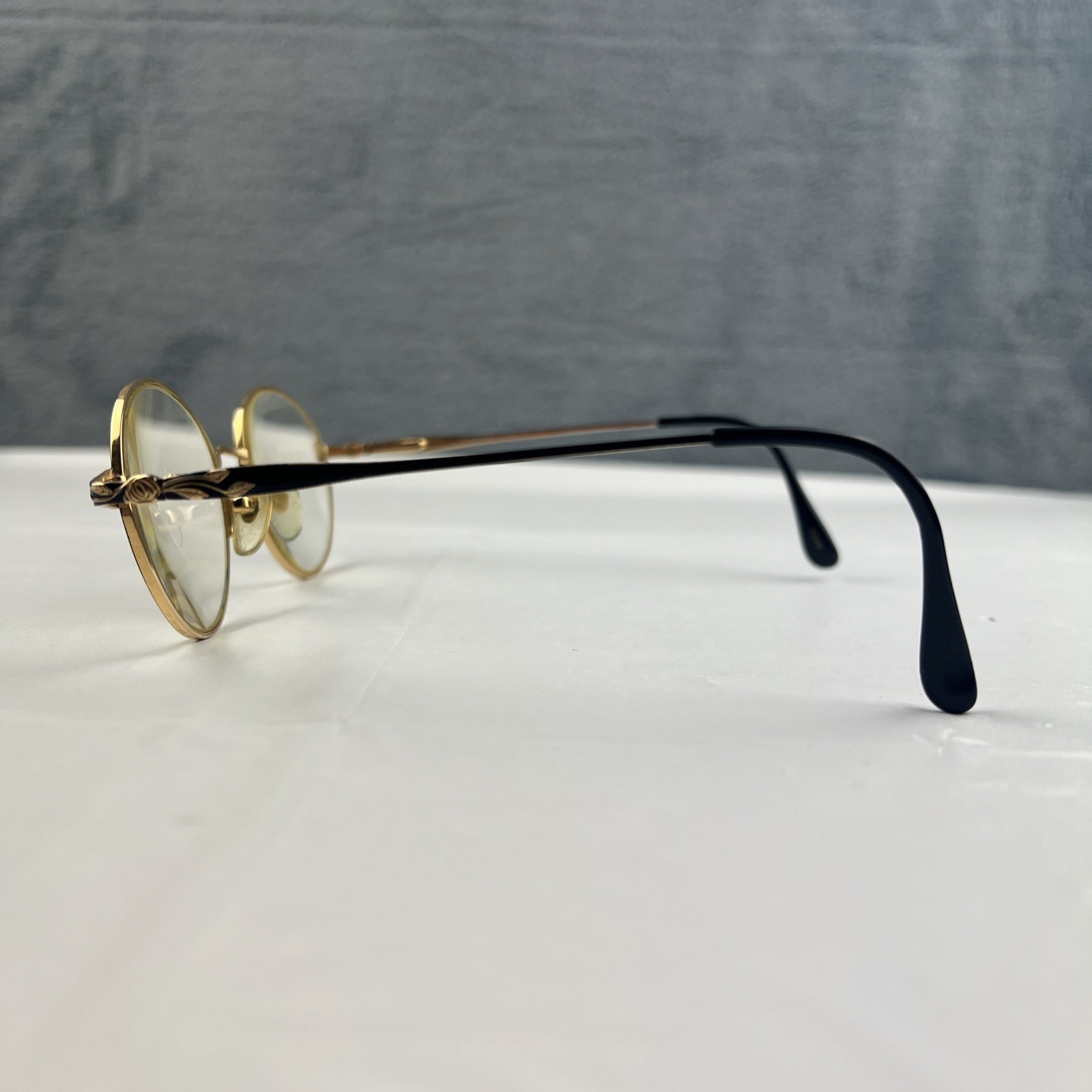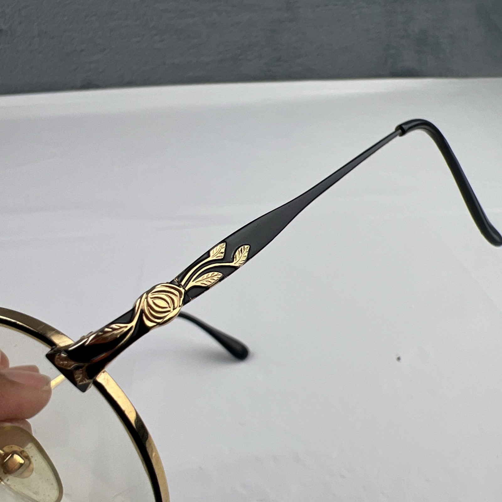 как выглядит Vintage Laura Ashley ELEANOR Black Gold Eyeglasses Frame 51-18-140 Etched Arms фото
