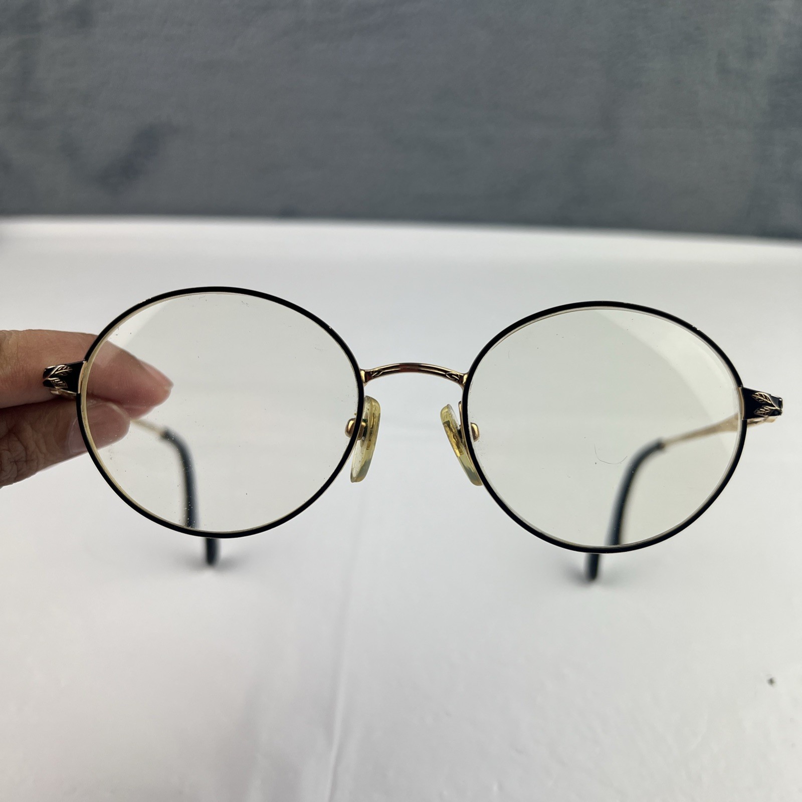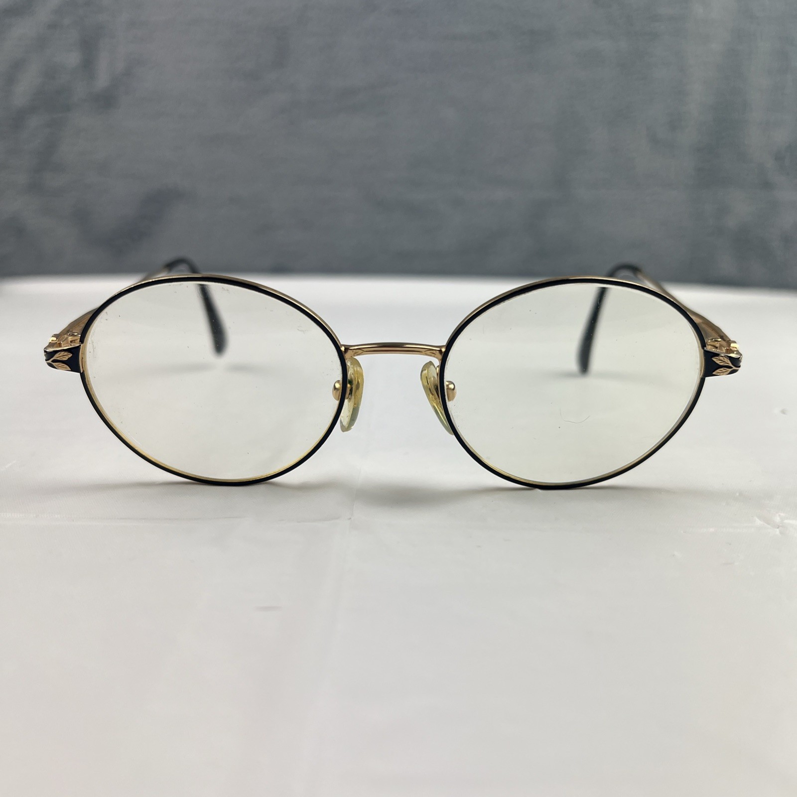 Vintage Laura Ashley ELEANOR Black Gold Eyeglasses Frame 51-18-140 Etched Arms