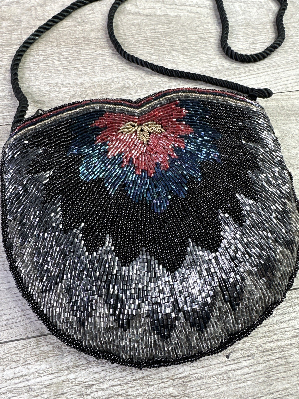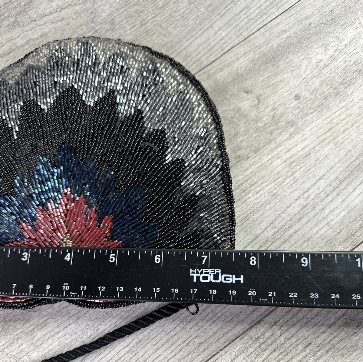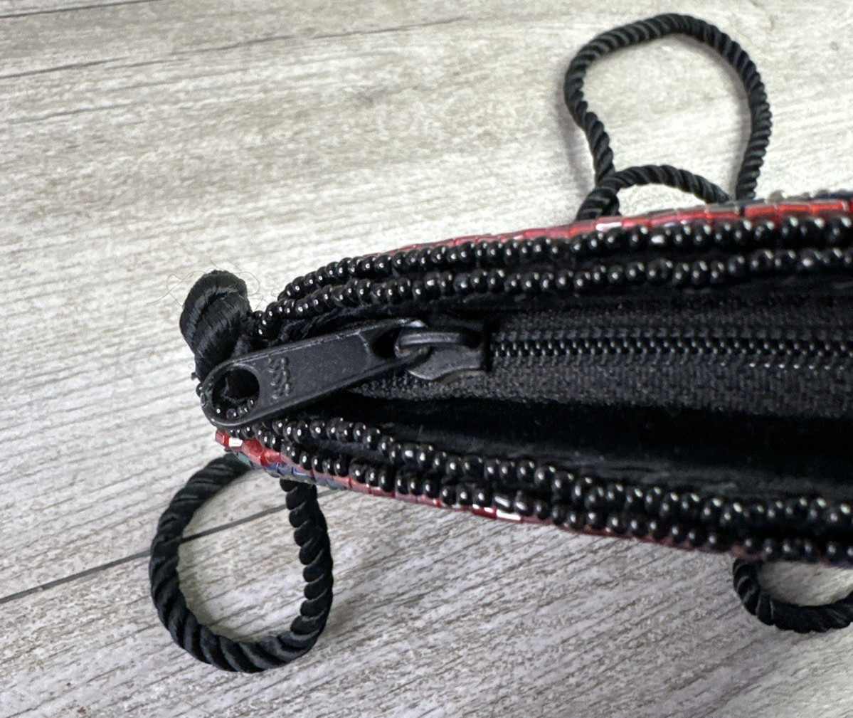 Black Colorful Beaded Purse Bag Zipper Close Made In Macau