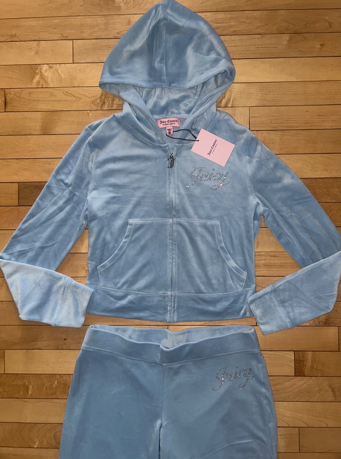 NEW NWT JUICY COUTURE Velour OG Bling Tracksuit Set Frosted Light Blue Size S