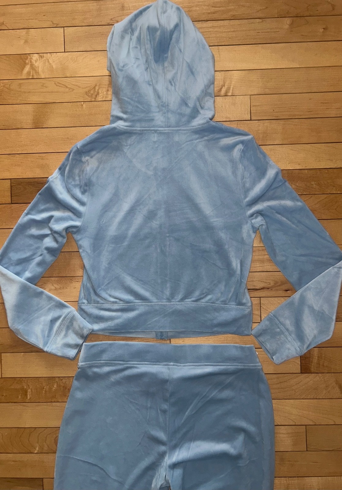 как выглядит NEW NWT JUICY COUTURE Velour OG Bling Tracksuit Set Frosted Light Blue Size S фото
