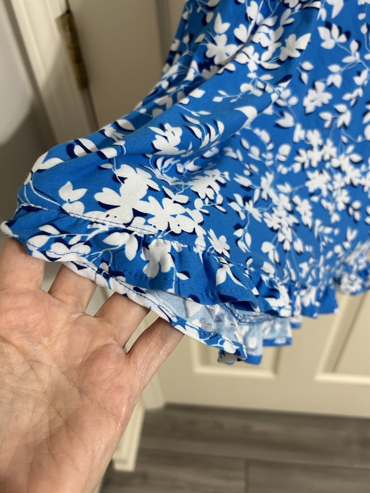 как выглядит Draper James Womens Ruffle Nightie Dress In Blue Shadow Floral Size S/M NWT фото