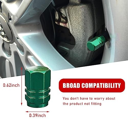 Car Tire Valve Stem Caps, Aluminum Alloy Wheel Valve Covers with 8 PCS Green
