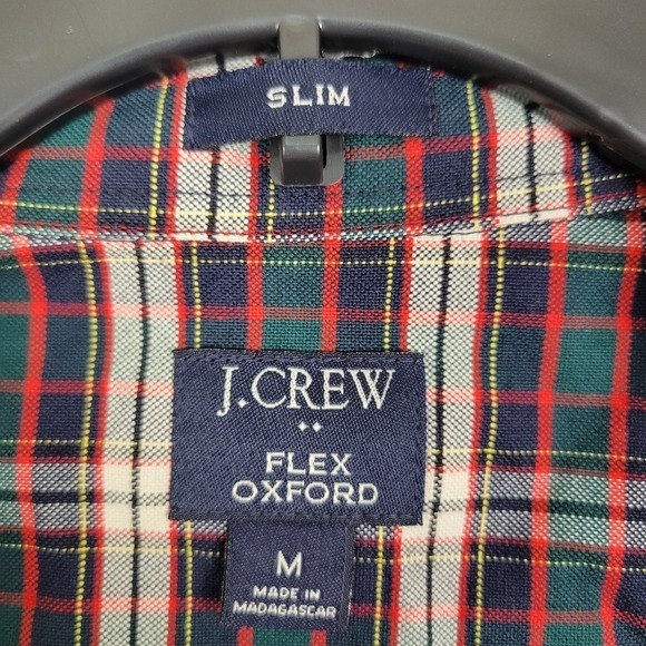 J Crew Flex Oxford Button Down Shirt Mens Medium Slim Fit Red Green Plaid Casual